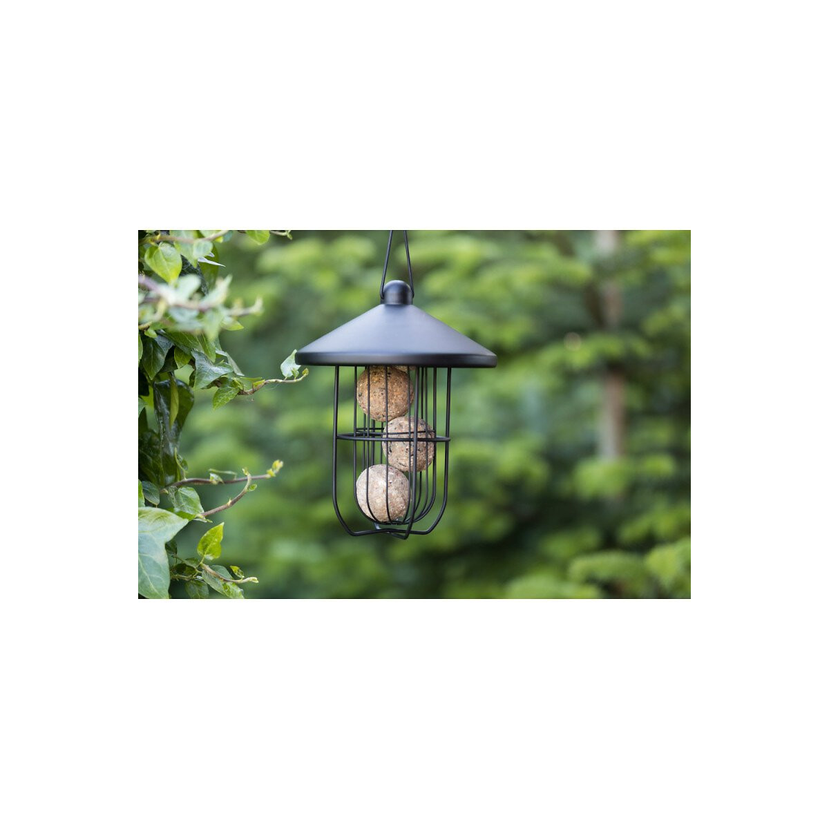 Mangeoire boule de graisse - En métal, revetement en poudre et finition satiné - Design moderne de haute qualité - Grille extérieure pour se poser et reposer - Facile a remplir grâce au toit détachable - a suspendre - ø 19 × 24 cm - Noir - Pour oiseauSpécifications techniques