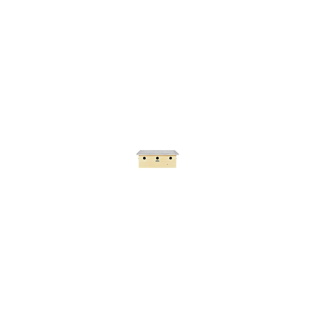 Nichoir en bois horizontal pour moineaux Ce nichoir en bois avec toit en zinc est un hôtel qui possède 3 appartements. Ils permettent d'accueillir aussi bien des moineaux que des mésanges. Parfait pour l'hiver et pour protéger les oiseaux de cette période rude et froide, ce nichoir pour moineaux à accrocher possède une ouverture avant entière qui facilite le nettoyage et en automne pour recevoir les oiseaux en hiver.Dimensions (L x l x H) : 16,8 x 46,8 x 20,5 cmPoids : 2,46 kgMatériau : bois pin FSC® / toit en zinc / Dimensions (L x l x H):16,8 x 46,8 x 20,5 cm / Marque:ESSCHERT DESIGN / Matière(s):Bois / Zinc / Poids:2,46 kgSpécifications techniques
