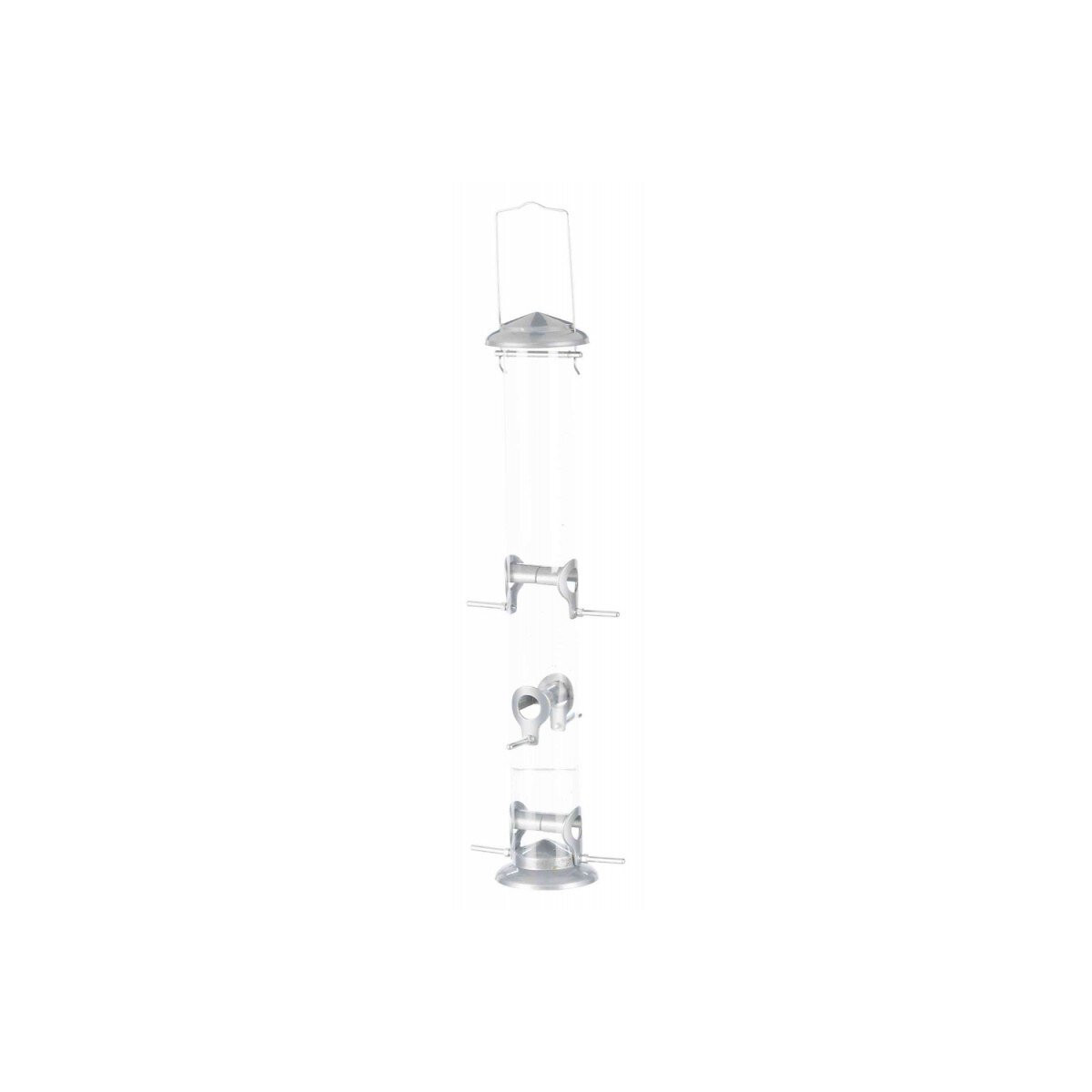 Mangeoire extérieure pour oiseaux. avec couvercle amovible. facile à nettoyer grâce aux parties amovibles. à suspendre hauteur total avec la anse 63 cm. en plastique/métal, verni. Dimensions: contenance 1.300 ml. hauteur 53 cm. ø du tube 6.5 cm ø avec perchoir 15 cm. Coloris: argent. Mangeoire extérieure pour oiseaux. avec couvercle amovible. facile à nettoyer grâce aux parties amovibles. à suspendre hauteur total avec la anse 63 cm. en plastique/métal, verni. Dimensions: contenance 1.300 ml. hauteur 53 cm. ø du tube 6.5 cm ø avec perchoir 15 cm. Coloris: argent. Photo non contractuelle, car il y a plusieurs vendeurs sur une même fiche produit.Spécifications techniques