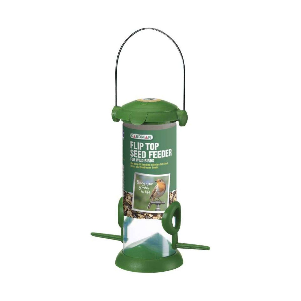 Distributeur de graines pour oiseaux avec 2 mangeoires auto alimentée à disposer dans votre jardin. Hauteur 20cm.Spécifications techniques