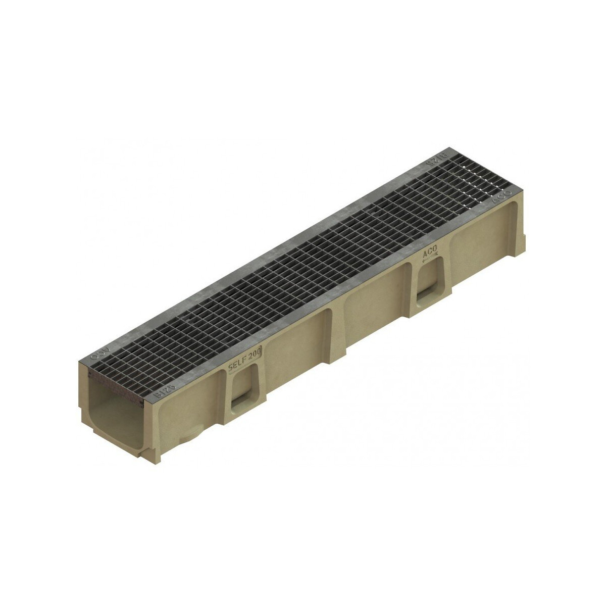 Caniveau SELF 200 - Hauteur 145mm - Largeur 150 mm - ACO - Grille caillebotis acier galvanisé / maille 30x15mm / B125 Les caniveaux ACO Self sont fabriqués en Béton Polymère. Ils sont recommandés pour le drainage des eaux pluviales dans un usage domestique. Classe A15 ou B125. Ils sont équipés du système de fixation intégré (grille clipsée). Caractéristiques du caniveau Marque ACO Largeur utile 150 mm Hauteur 145 mm Type de fixation Grille fixée par clipsage Matière Béton Polymère Type de sortie Sortie verticale préformée en DN80 et DN100 Débit maximum 460 L/min Pourquoi drainer les eaux pluviales ? L’urbanisation florissante des villes conduit à une imperméabilisation des sols et à une augmentation du risque d’inondation. Le drainage est donc indispensable afin de maîtriser les problèmes d’infiltration d’eau et implique d’intégrer la gestion des eaux en amont de tous projets de construction. Quelle grille choisir ? La grille passerelle en acier galvanisé : utilisé pour fournir des caniveaux résistants à la corrosion, pour des grilles ou des feuillures de caniveaux. La galvanisation est par définition l'action de recouvrir un élément d'une couche de zinc dans le but de la protéger contre la corrosion. La partie recyclée des produits ACO en Acier Galvanisé est d'environ 30%. La grille Voronoï : elle fait penser aux craquelures que dessine une terre asséchée. L'aspect de la grille Voronoï peut cohabiter tant avec un environnement minéral que végétal. On retrouve un alliage de fer et de carbone, la fonte est un matériau robuste pourvu d’une excellente résistance à la corrosion. De plus elle trouve naturellement sa place dans les endroits à trafic fréquent et est parfaitement adaptée pour un drainage devant les entrées de garage et le long des façades. La grille fonte : les caractéristiques intrinsèques de la Fonte, alliage de fer et de carbone, résident dans son caractère robuste et son excellente résistance à la corrosion. Les produits en Fonte fabriqués par ACO sont considérés sur le plan de la construction comme le meilleur partenaire pour l’installation de siphons à l’épreuve du feu. La grille caillebotis : grâce à sa grande capacité de collecte et d’évacuation, cette grille est recommandée pour les surfaces à forte pente et les entrées de garage en sous-sol. Caractéristiques de la grille Type de grille Grille caillebotis acier galvanisé Normes NF EN 1943 Marquage CE