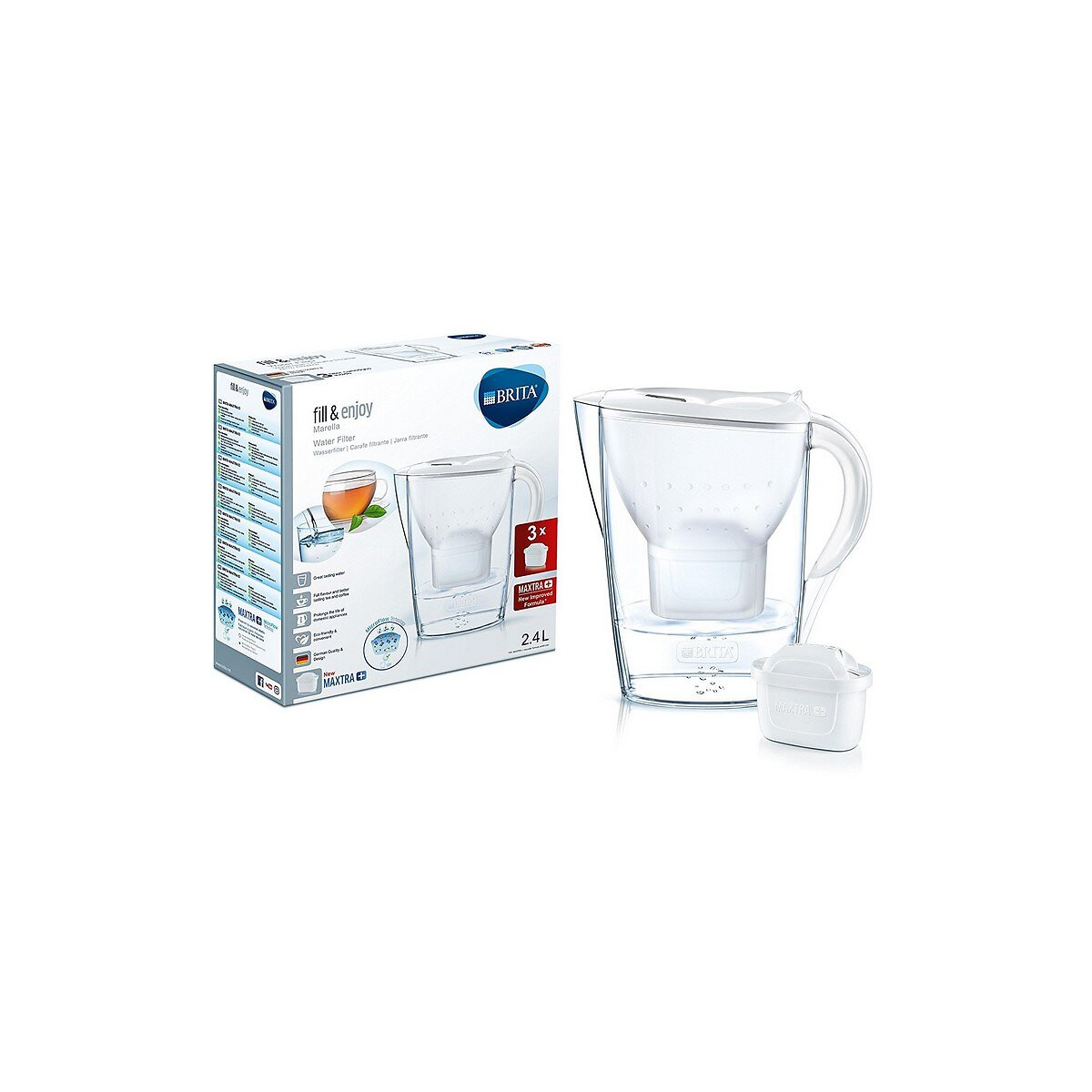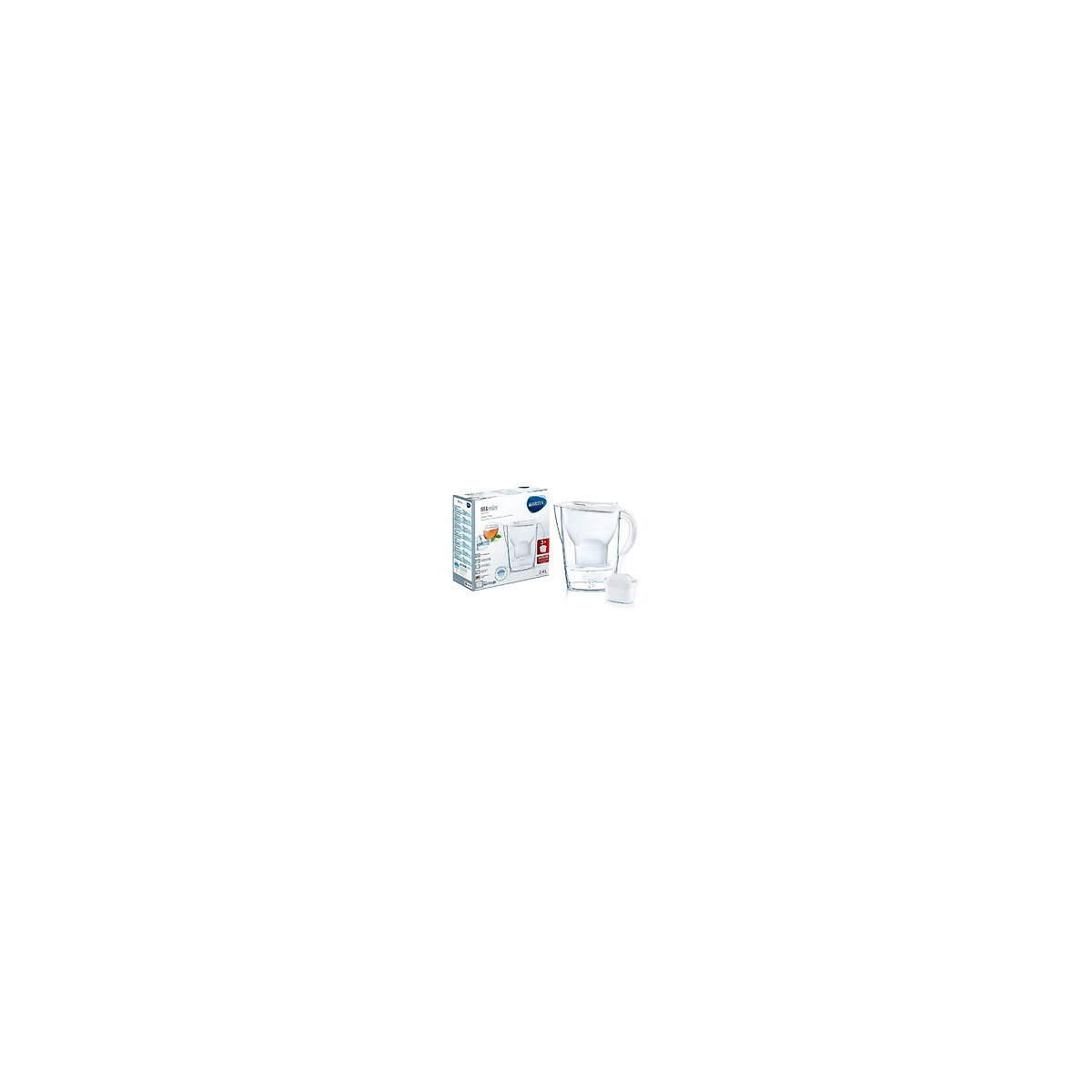 1026038 - La carafe filtrante Fill & Enjoy Marella 1026038 de BRITA se décline dans de nombreux coloris. Ce modèle n'est pas seulement un régal pour les yeux : grâce à sa technologie de filtration MAXTRA+, il réduit considérablement le tartre et le goût désagréable de l'eau potable du robinet.La façon la plus intelligente de boire de l'eau en transformant l'eau du robinet en eau BRITA fraîchement filtrée. Voici la nouvelle gamme de couleurs Marella, pour que vous puissiez choisir celle qui correspond le mieux à votre style de vie. Ils sont très pratiques et faciles à utiliser! Quelle meilleure façon de profiter de l'eau filtrée.L'eau filtrée BRITA vous aide à rafraîchir, hydrater, préparer de délicieux cafés et thés et est même idéale pour cuisiner. - Pratique : ouverture de remplissage dans le couvercle pour un remplissage facile. Indicateur de changement de cartouche. Passe au lave-vaisselle sauf couvercle. Coloris : Blanc. Capacité du réservoir : 2,4 L. Capacité d'eau filtrée : 1,4 L. Comprend 1 x 4 filtres Maxtra+ = 4 mois d'eau filtrée. Dimensions (LxlxH) : 26,5 x 11 x 27,5 cm. Poids : 1,29 kg.