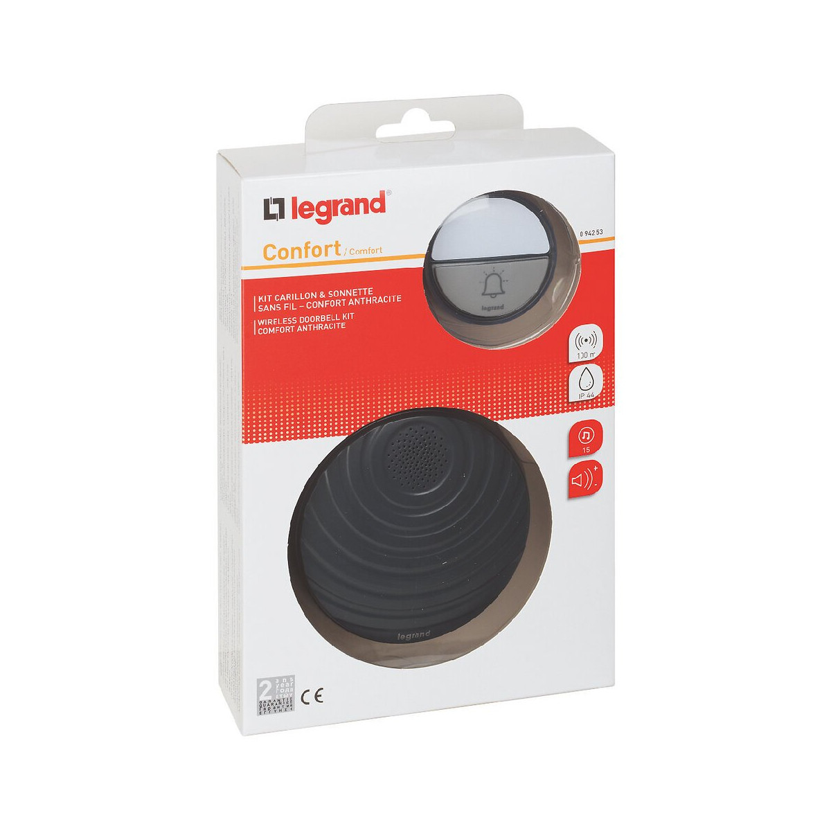 Kit carillon radio sans fil Confort à piles - anthracite. D'un design sobre et élégant, ce kit radio gris anthracite, sonnette et carillon sans fil, d'une mise en oeuvre immédiate, fonctionne jusqu'à 100m de distance maximum en champs libre. Pile sonnette fournie. La transmission radio et le fonctionnement sur piles de la sonnette et du carillon permettent une installation sans fil.Spécifications techniques