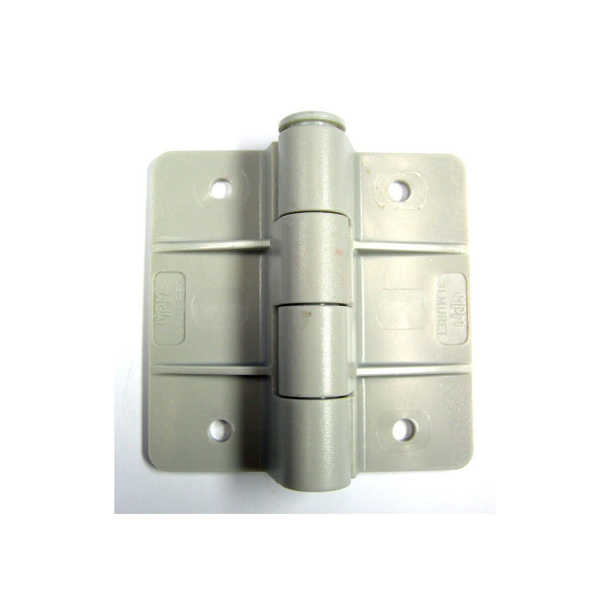 Charnière plastique. Coloris : gris. Dimensions : 80 mm x 80 mm. Diamètre 10 mm.