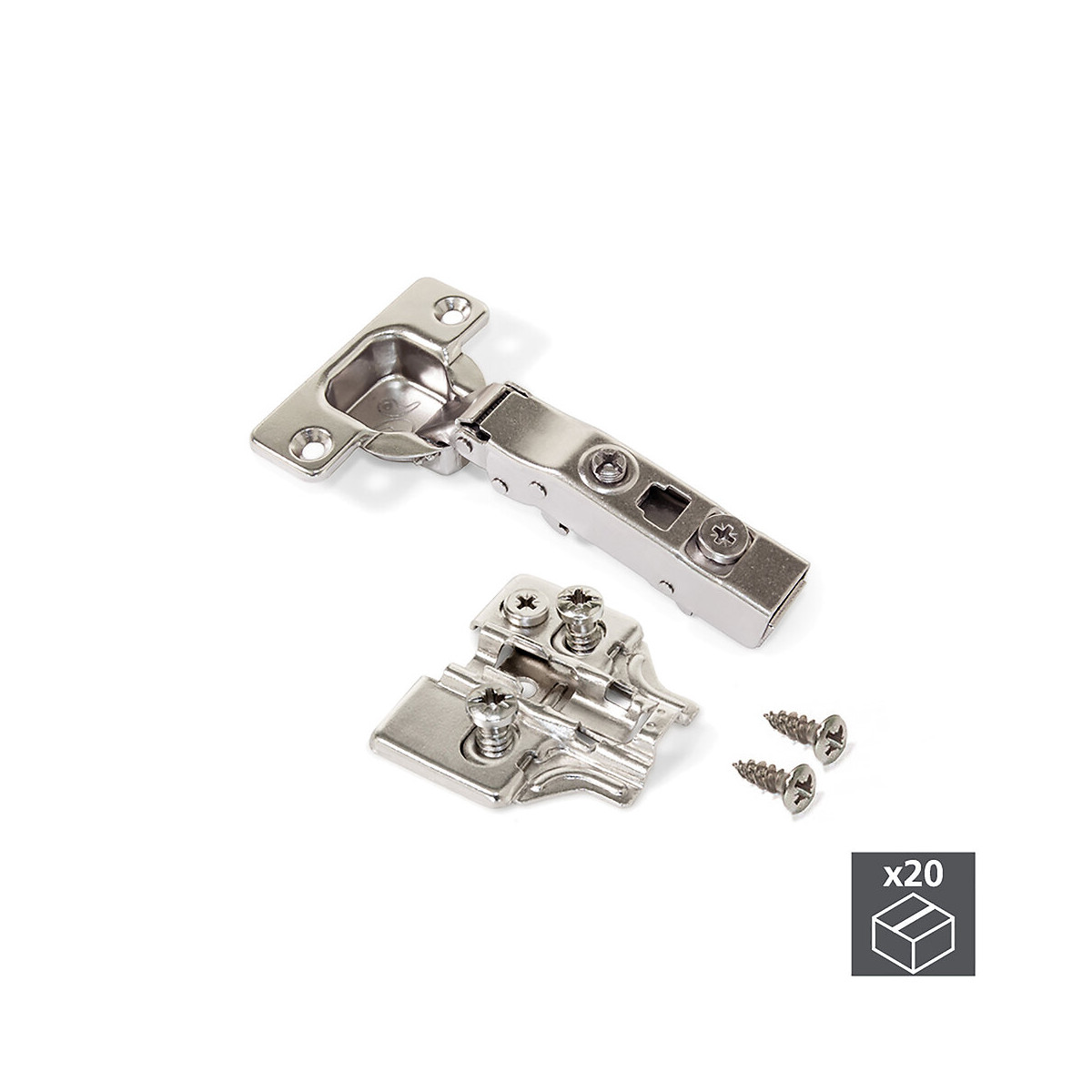 Emuca Charnière, D. 35 Mm, Droite Pour Montage En Applique, Ouverture 100º, Avec Embase Eurovis, 20 Ut.