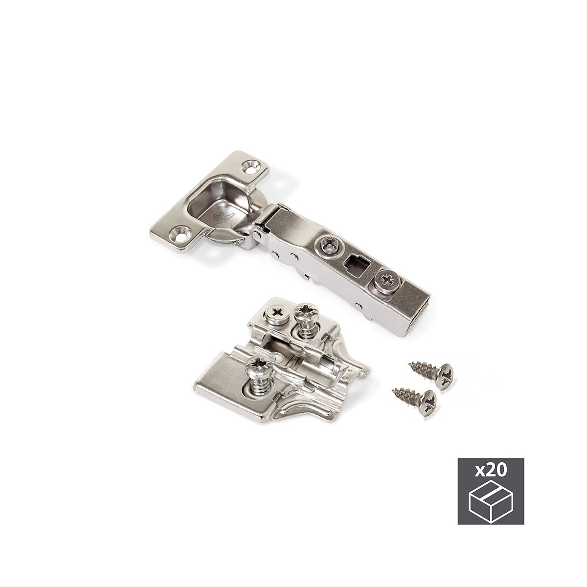 Emuca Charnière, D. 35 Mm, Droite, Fermeture Amortie, Ouverture 100º, Avec Embase Eurovis, 20 Ut.