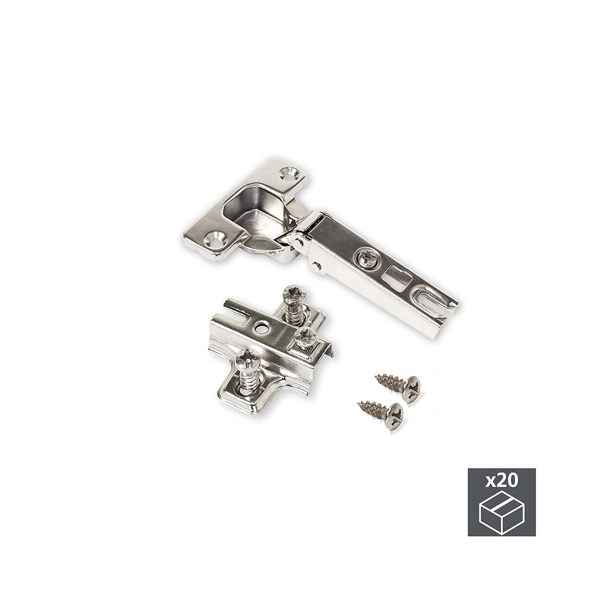 Emuca Charnière, D. 35 Mm, Droite Pour Montage En Applique, Ouverture 110º, Avec Embase Eurovis, 20 Ut.