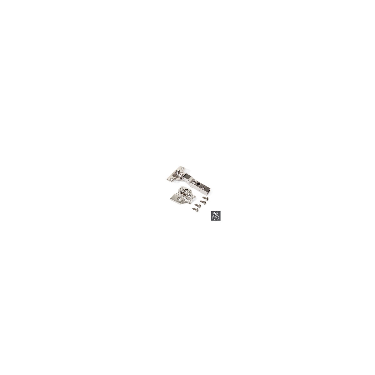 Emuca Charnière, D. 35 Mm, Coudée Pour Montage En Applique Sur Panneau Mitoyen, Ouverture 100º, Avec Embase, 20 Ut.