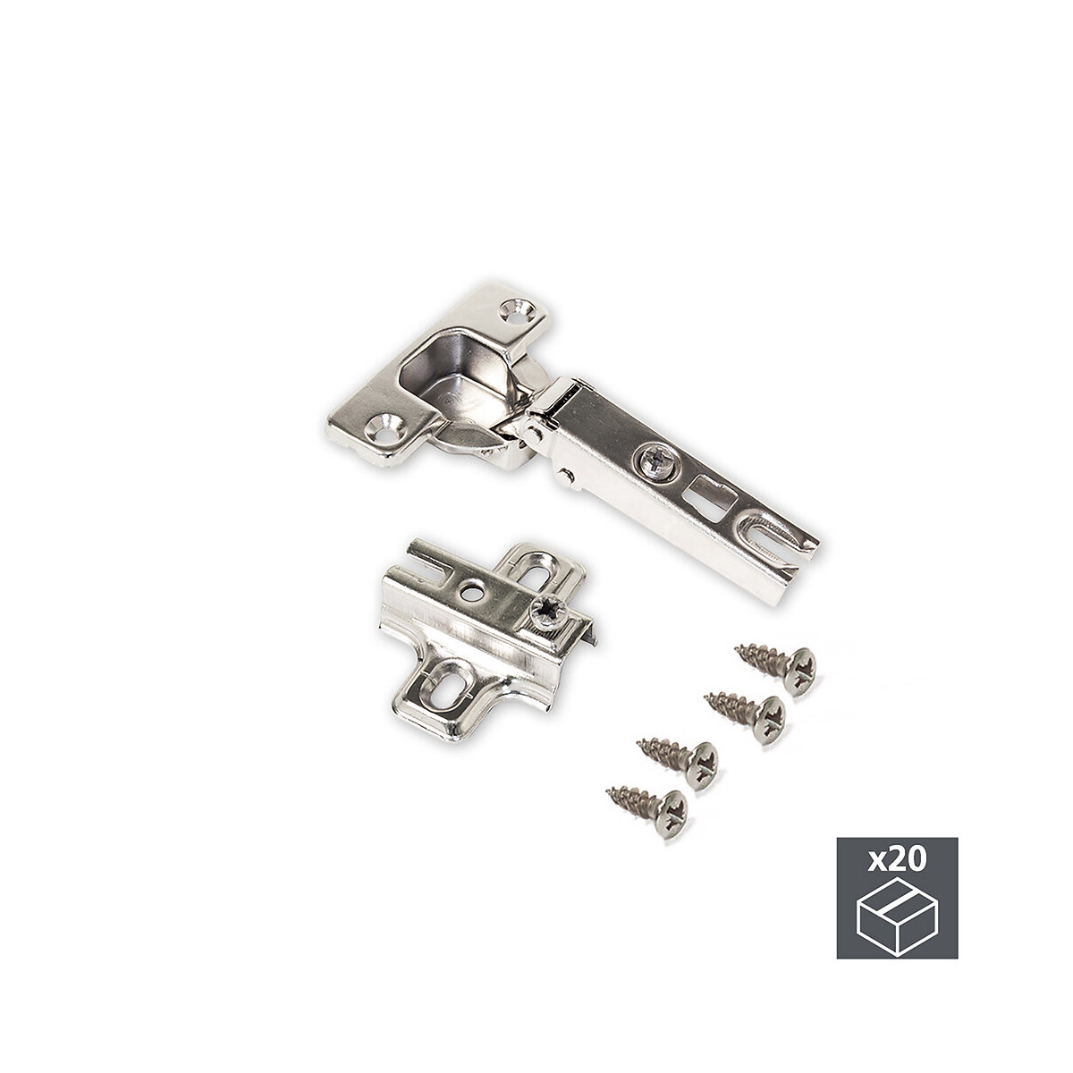 Emuca Charnière, D. 35 Mm, Droite Pour Montage En Applique, Ouverture 110º, Avec Embase, 20 Ut.
