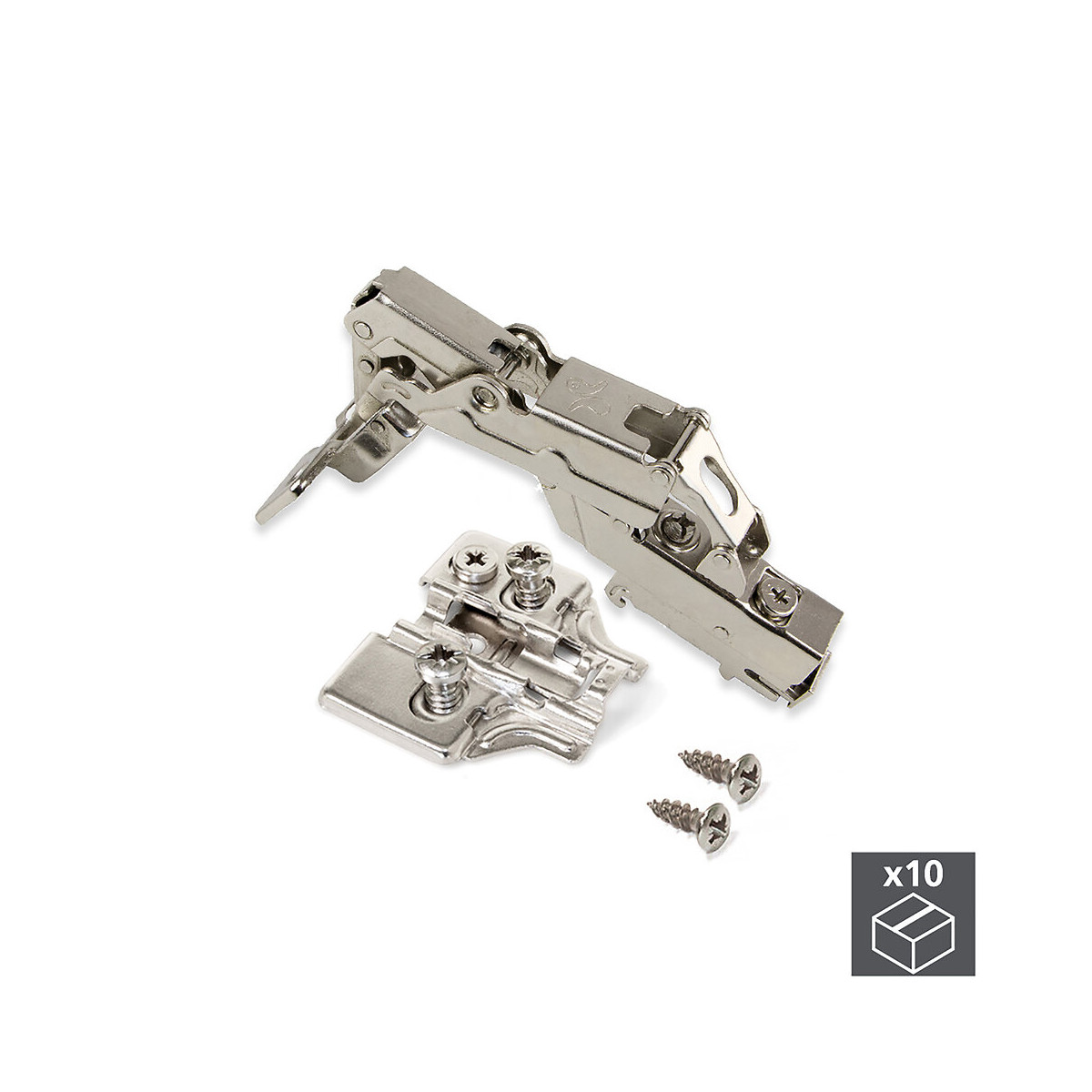 Emuca Charnière X91, D. 35 Mm, Coudée, Fermeture Amortie, Ouverture 165º, Avec Embase Eurovis, 10 Ut.