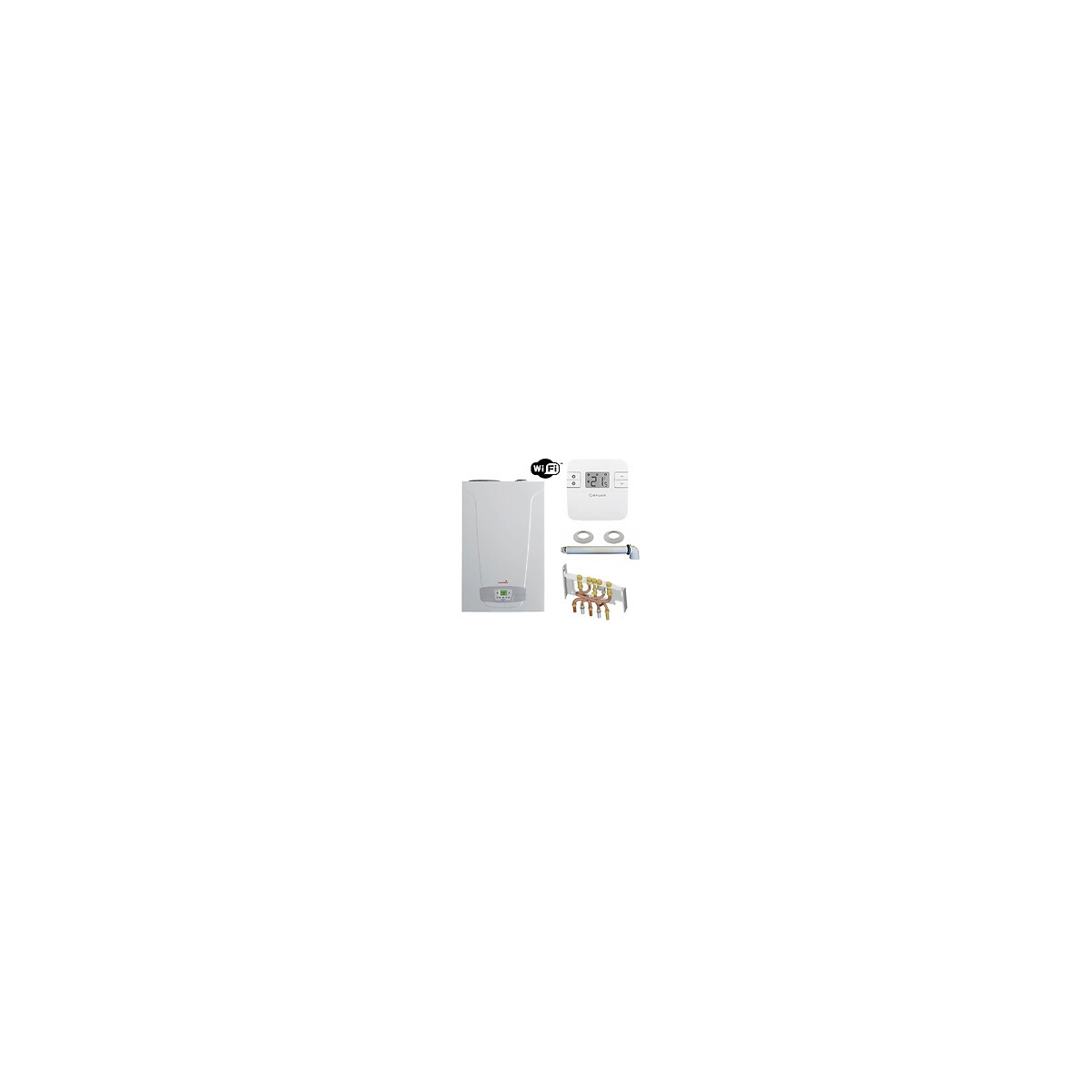 PACK CHAUDIERE COMPRENANT CHAUDIERE INITIA + DUO 3.25 HTE + Barrette de robinetterie + Jeu de douilles + Ventouse Condensation + Thermostat Connecté WIFI Dispose d'un ballon de stockage à serpentin d'eau chaude en inox de 40 litres. Jusqu'à 108,8 % de rendement utile à charge partielle (30 %) pour de réelles économies de gaz et un allègement des factures de chauffage. Modulation intégrale de la puissance entre 16 et 100%. Filtre chauffage intégré et visitable permettant de protéger le corps de chauffe. Fonctionnement en gaz naturel avec possibilité de transformation au GPL. Corps de chauffe en cuivre Mode d'évacuation Ventouse condensation Energie Gaz naturel ou butane propane (simple réglage) Usage Chauffage + eau chaude sanitaire Classe énergétique chauffage A Classe énergétique sanitaire A Rendement énergétique saisonnier 93 % Puissance nominale à 80 / 60°C 16 kW Température maxi chauffage 80°C Pression maxi chauffage 3 bar Débit spécifique suivant EN 13203 (ΔT=30 K) 15,5 litres/minute Capacité ballon ECS 40 litres Capacité vase d'expansion 7,5 litres Rendements à charge 100% Pn 97,7% Rendements à charge 30 % Pn 108,8% Régulation Modulante Dimensions (HxLxP) 950 x 600 x 466 mm Poids 62 kg Pour la Garantie 2 ans Fabricant n'oubliez pas: La mise en service doit être effectuée par une station technique agrée par la marque