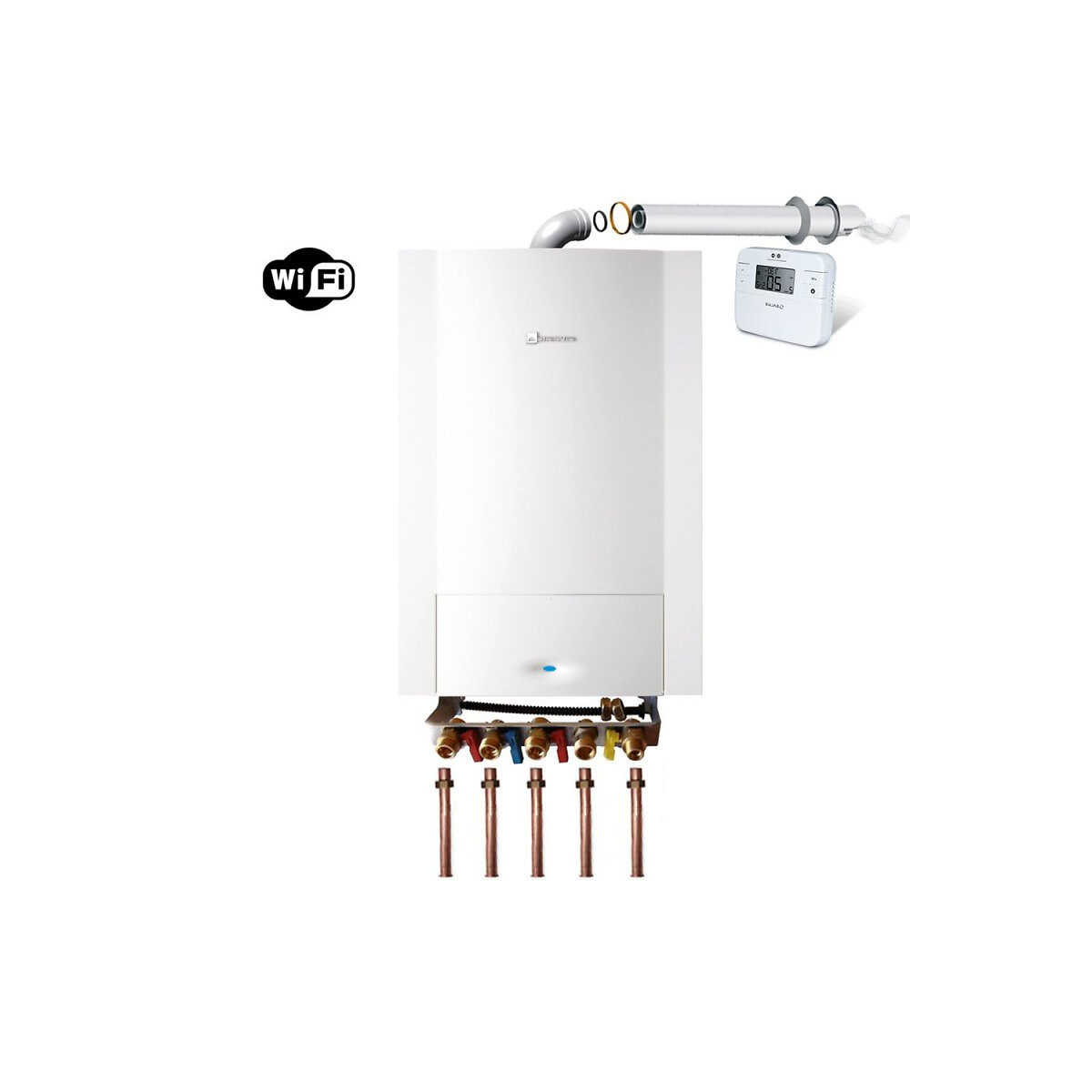PACK COMPRENANT CHAUDIERE Egalis Ballon Condens + Barrette de robinetterie + Jeu de douilles + Ventouse Condensation + Thermostat Connecté WIFI Ballon d’accumulation à serpentin de 48 litres pour un confort immédiat Parfaite stabilité de la température de l'eau chaude, même lors de sollicitations simultanées. Jusqu'à 108,6 % de rendement utile 30 % pour de réelles économies de gaz. Bénéficiez d'un crédit d'impôt sur les chaudières à condensation. Dimensions compactes : seulement 60 cm de largeur Puissance minimale basse (6,6 kW) pour s'adapter aux logements nécessitant une faible puissance de chauffage Corps de chauffe en aluminium silicium Mode d'évacuation ventouse condensation Energie Gaz naturel Usage Chauffage + eau chaude sanitaire Classe énergétique chauffage A Classe énergétique sanitaire A Rendement énergétique saisonnier 97,3 % Puissance utile à 80 / 60°C 6,6 à 22,8 kW Puissance utile à 40 / 30°C 7,3 à 23,7 kW Température maxi chauffage 82°C Pression maxi chauffage 3 bar Débit spécifique suivant EN 13203 (ΔT=30 K) 16,6 litres/minute Capacité vase d'expansion 7 litres Rendements à charge 100% Pn 97,3 % Rendements à charge 30 % Pn 108,6% Régulation Modulante Dimensions (HxLxP) 890 x 600 x 482 mm Poids 78 kg Pour la Garantie 2 ans Fabricant n'oubliez pas: La mise en service doit être effectuée par une station technique agrée par la marque
