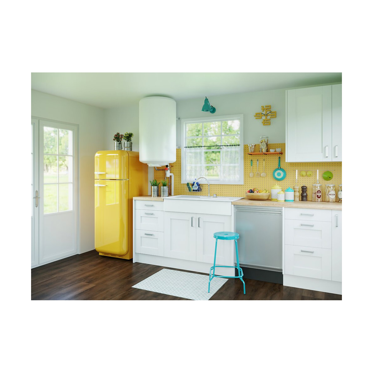 Durée de vie renforcée : - Grâce à son anode en titane inusable, il protège de la corrosion en permanence. - Résistance protégée du tartre. - Thermostat électronique permet la fiabilité de la température Minimum d'entretien : - Résistance à l'intérieur du fourreau : simple à remplacer. - Protection de cuve permanente. Simple à installer et à utiliser : - Plaques de fixation incluses pour une pose rapide et sans effort. - Format compact pour s'intégrer facilement dans les espaces de faible hauteur. Fabriqué en France. Classe Energétique Catégorie C. Norme NF Performance 2 Eoiles. Garantie : 5 ans la cuve - 3 ans pièces électriques - 2 ans main d'oeuvre et déplacement.Spécifications techniques