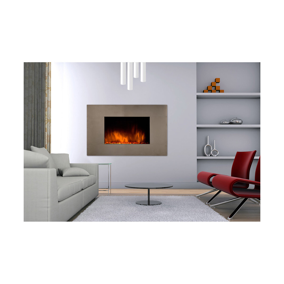 pure inox - La cheminée décorative PURE INOX de Chemin'Arte est conçue pour vous apporter confort et plaisir sans avoir à vous soucier de l'entretien ou de la sécurité de votre cheminée. En effet, après une installation rapide d'environ 15 minutes, vous pouvez profiter d'un authentique moment de détente au coin du feu. Il n'y a pas de risque pour vous ou vos proches car il n'y a pas de combustion réelle mais un effet de feu plus vrai que nature. Oubliez les poussières, le bois à transporter, les allumages laborieux?.Vous contrôlez votre cheminée du bout des doigts grâce à la télécommande. La cheminée décorative PURE INOX de Chemin'Arte peut réchauffer une pièce d'environ 30 m². En effet, elle intègre un chauffage de 2000 W. Les cheminées décoratives Chemin'Arte sont de véritables objets de décoration, sobres et élégantes, qui réchaufferont votre intérieur de part leurs côtés design et chaleureux. Jouez avec la couleur des flammes, installez vous confortablement dans votre canapé : ca y est, vous commencez déjà à vous détendre. Nos cheminées sont conçues en France, à Tournon sur Rhône, dans l'Ardèche. - Puissance : thermostat 1000 ou 2000W, protection contre la surchauffe Acier et Inox Leds à changement de couleurs : rouge, vert, bleu, jaune Effet feu de bois très réaliste : technologie à leds breveté Chemin'Arte Télécommande pour réglage à distance Design moderne Se fixe au mur à l'aide des supports prévus à cet effet ou se pose sur son pied (en option ref : 045) Livré avec un manuel de montage et d'utilisation, kit d'installation murale, télécommande, 1 façade inox Dimensions : 90 x 14 x 56 cm Couleur : Inox