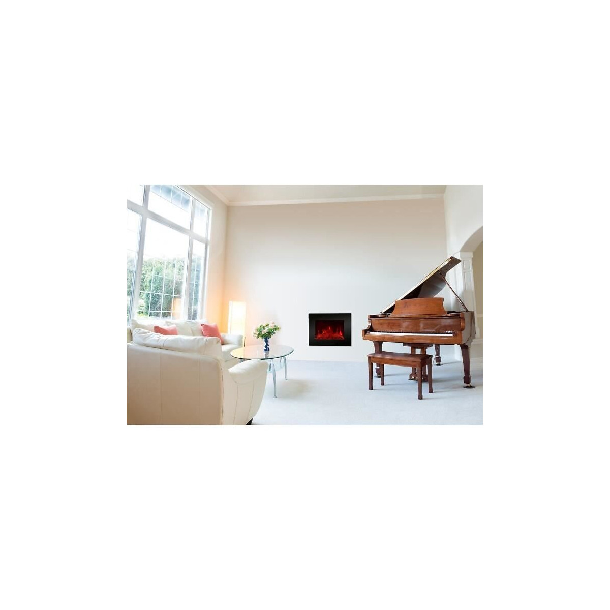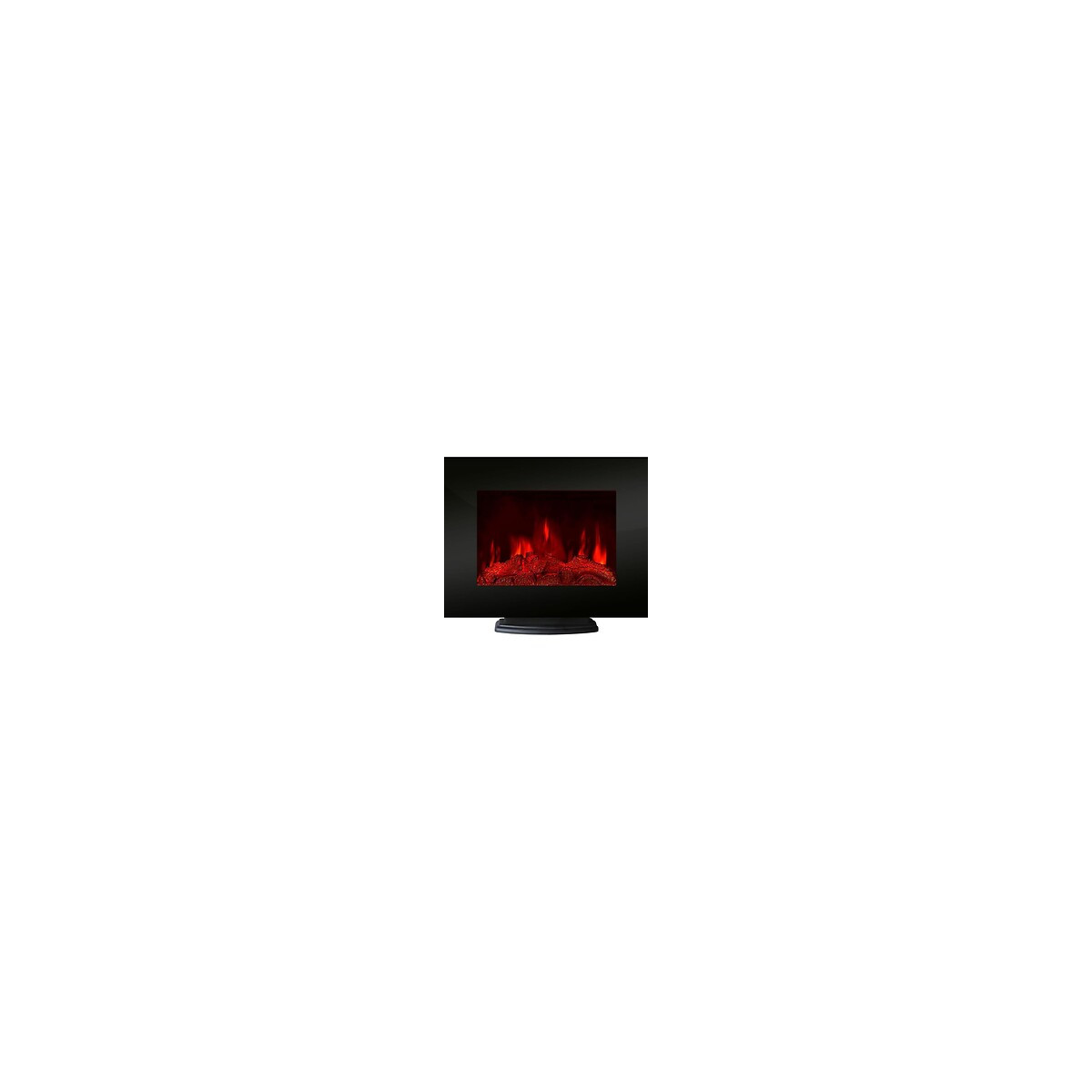 Cheminée murale avec bûches, effet feu - Dimensions : 56,2x66x24,5 cm - Face avant noire plate en verre trempé - 2 puissances de chauffe : 900 et 1800 W - Télécommande multifonction - Effet flammes avec ou sans chaleur - Protection anti-surchauffe - Fixations murales + pied - Monophasé 220-240V - 50Hz - Classe I - IP 20.