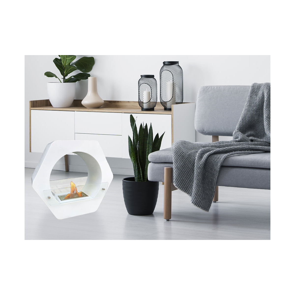 Cheminée Bio Au Sol, 2,5kw, Réservoir De 1,5l, En Forme Exagonale De Acier Blanc