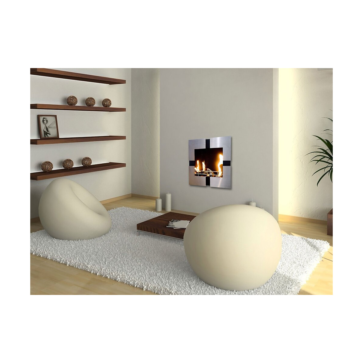 Cheminée Bioéthanol Murale - Acier Brossé Et Noir.