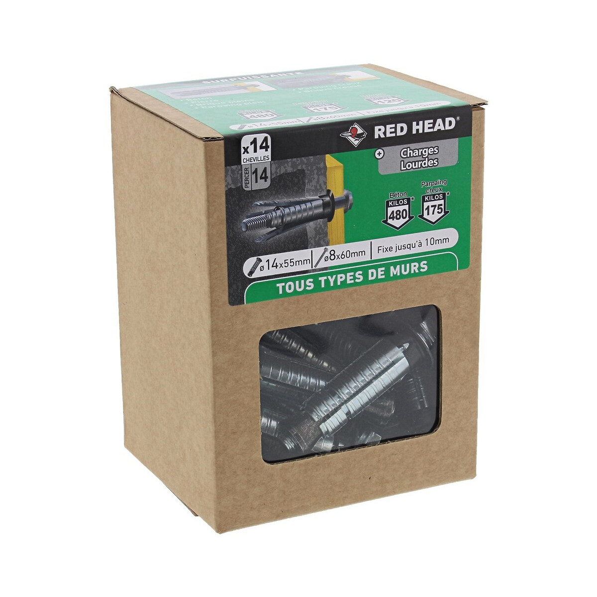 chevilles de Ø14 idéale pour fixer des charges lourdes comme des coffres fort, des portails, des hamacsSpécifications techniques