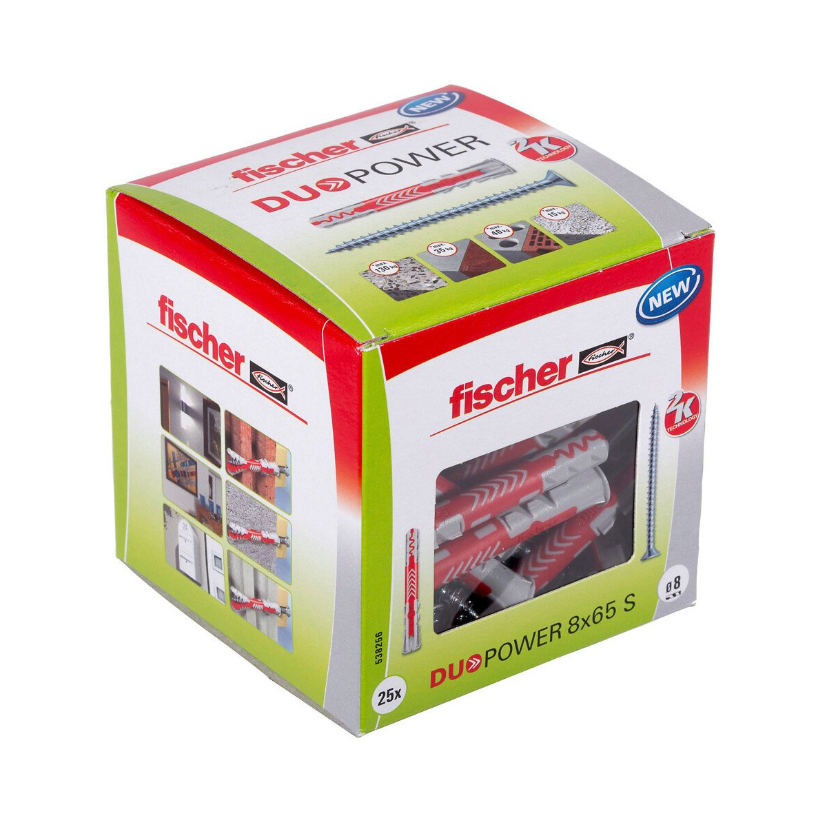 Boîtes de 25 chevilles tous matériaux DUOPOWER 8x65mm + vis
