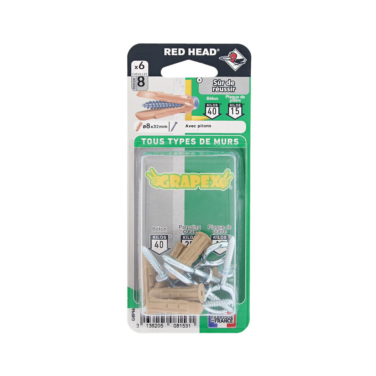 Blister de 8 chevilles Grapex 8x32mm + pitons