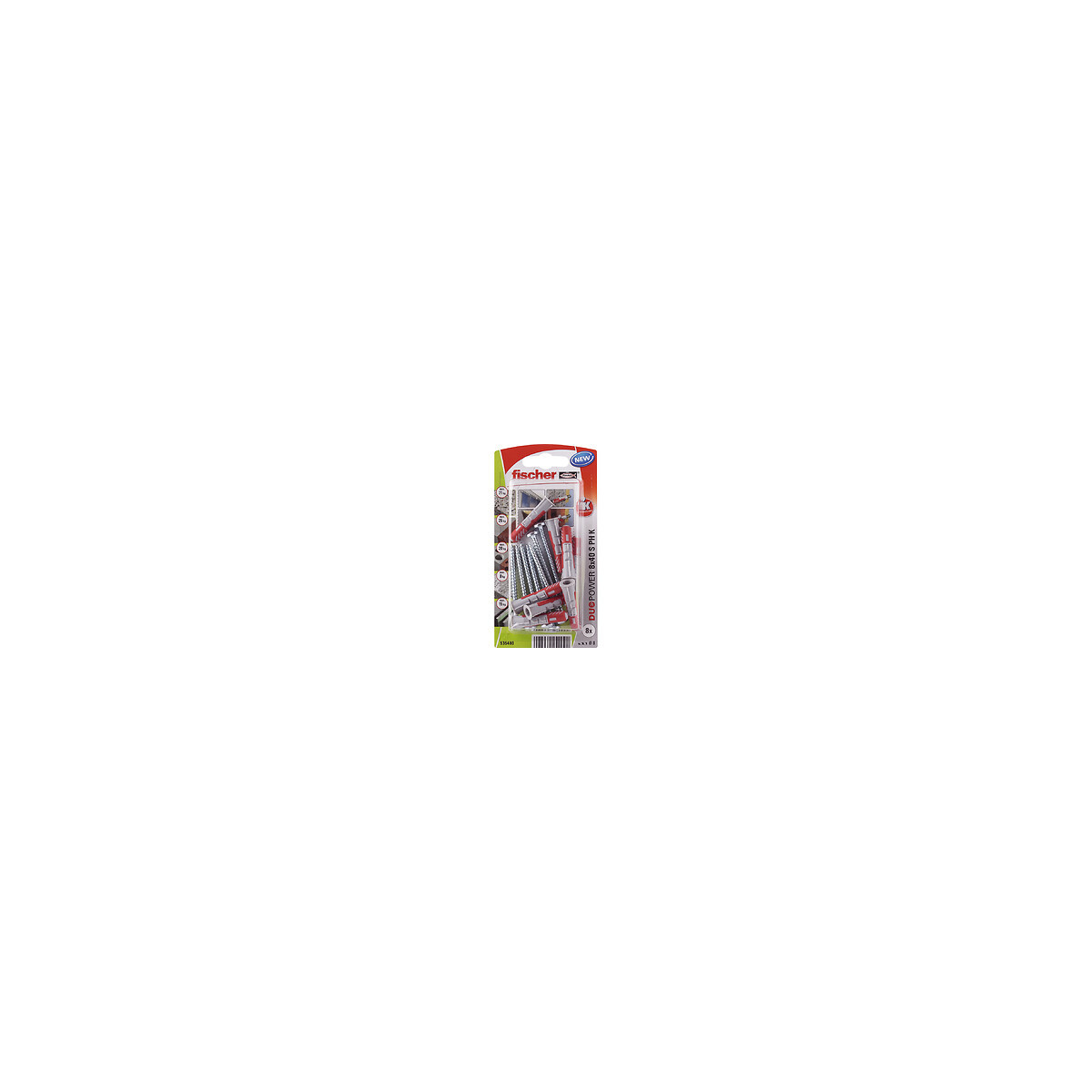 Blister de 8 chevilles tous matériaux DUOPOWER 8x40mm + vis