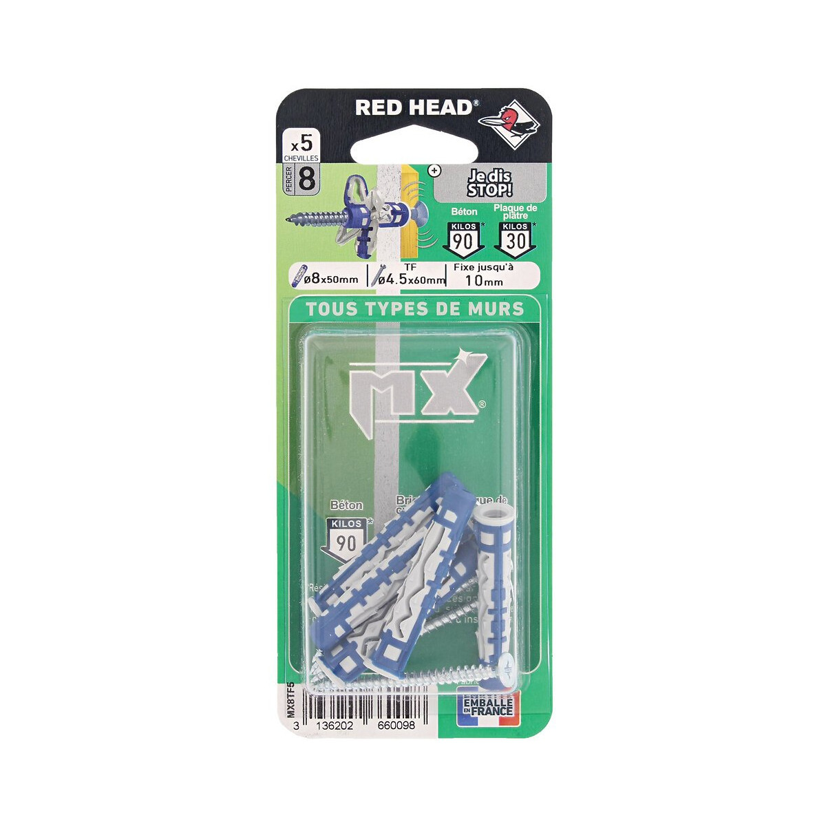 Blister de 5 chevilles Mx 8x50mm + vis TF 4.5x55mm