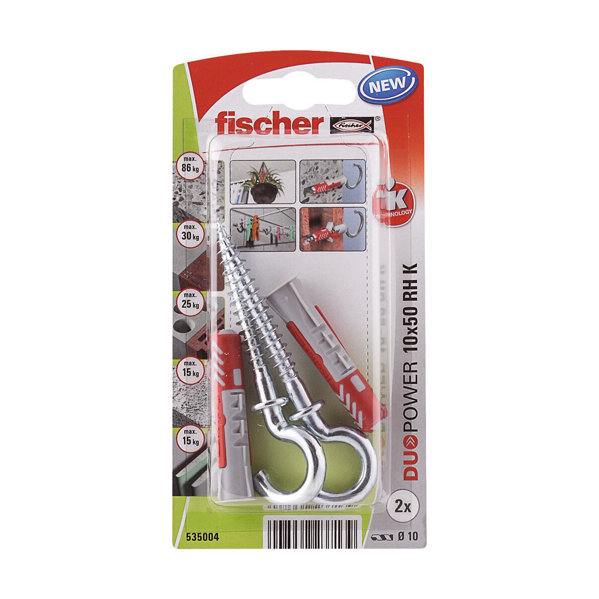 Blister 2 chevilles tous matériaux DUOPOWER 10x40mm + crochets