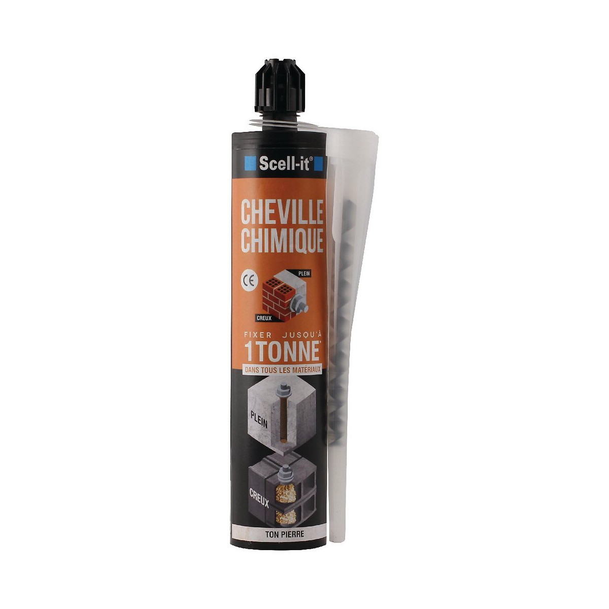 1 cartouche polyester avec styrène à poche ton gris 300 ml + 2 buses Pour la fixation de charge lourdes dans tous les matériaux, jusqu'à 1 tonne par point de fixation.Spécifications techniques