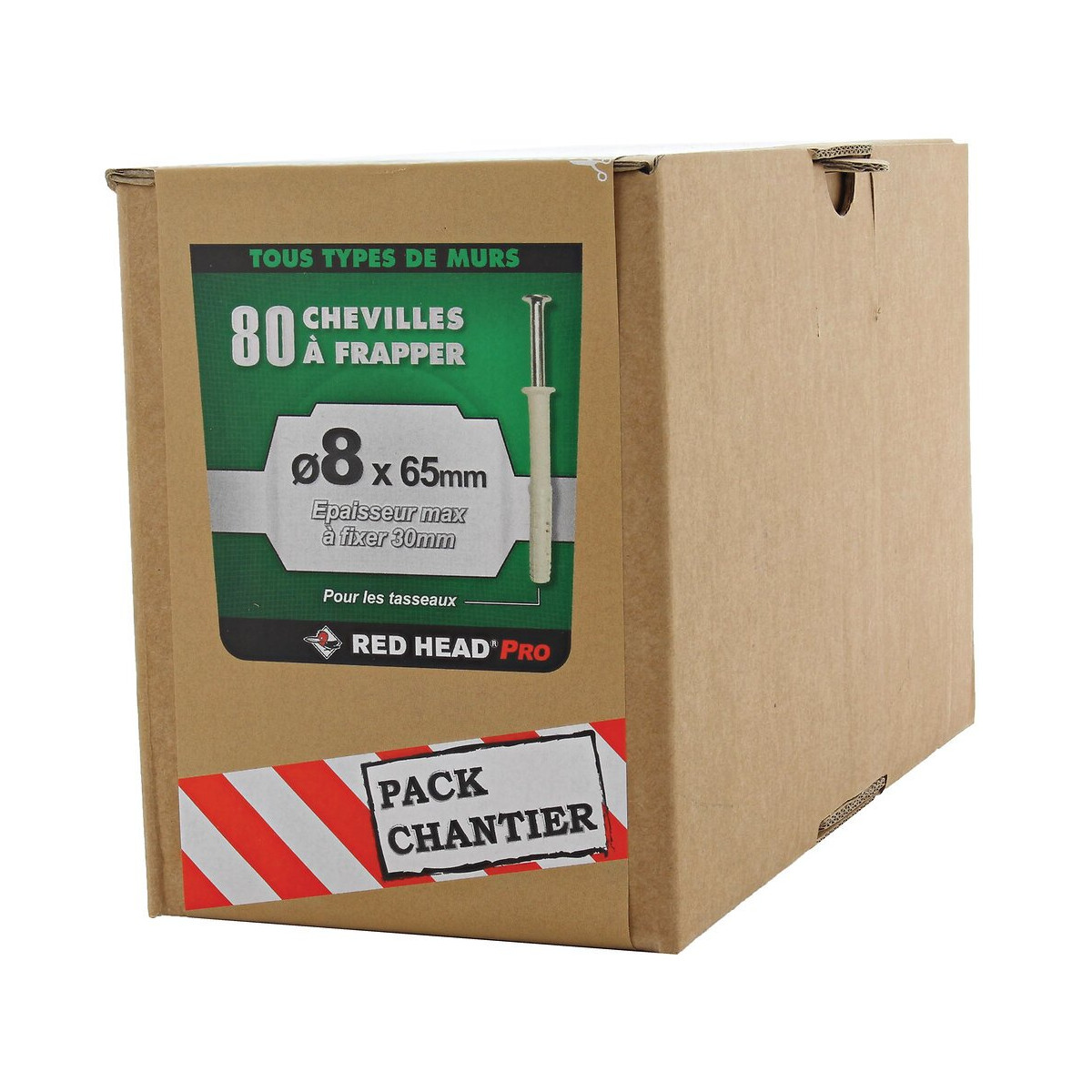 Sachet de 80 chevilles à frapper de 8 idéale pour fixer des lambourdes. Elle se choisit en fonction de l'épaisseur à fixer désignée par sa partie lisse sous la collerette. Idéale pour les travaux répétitifs. Il suffit de la frapper au marteau pour déclencher l'expansion.Spécifications techniques