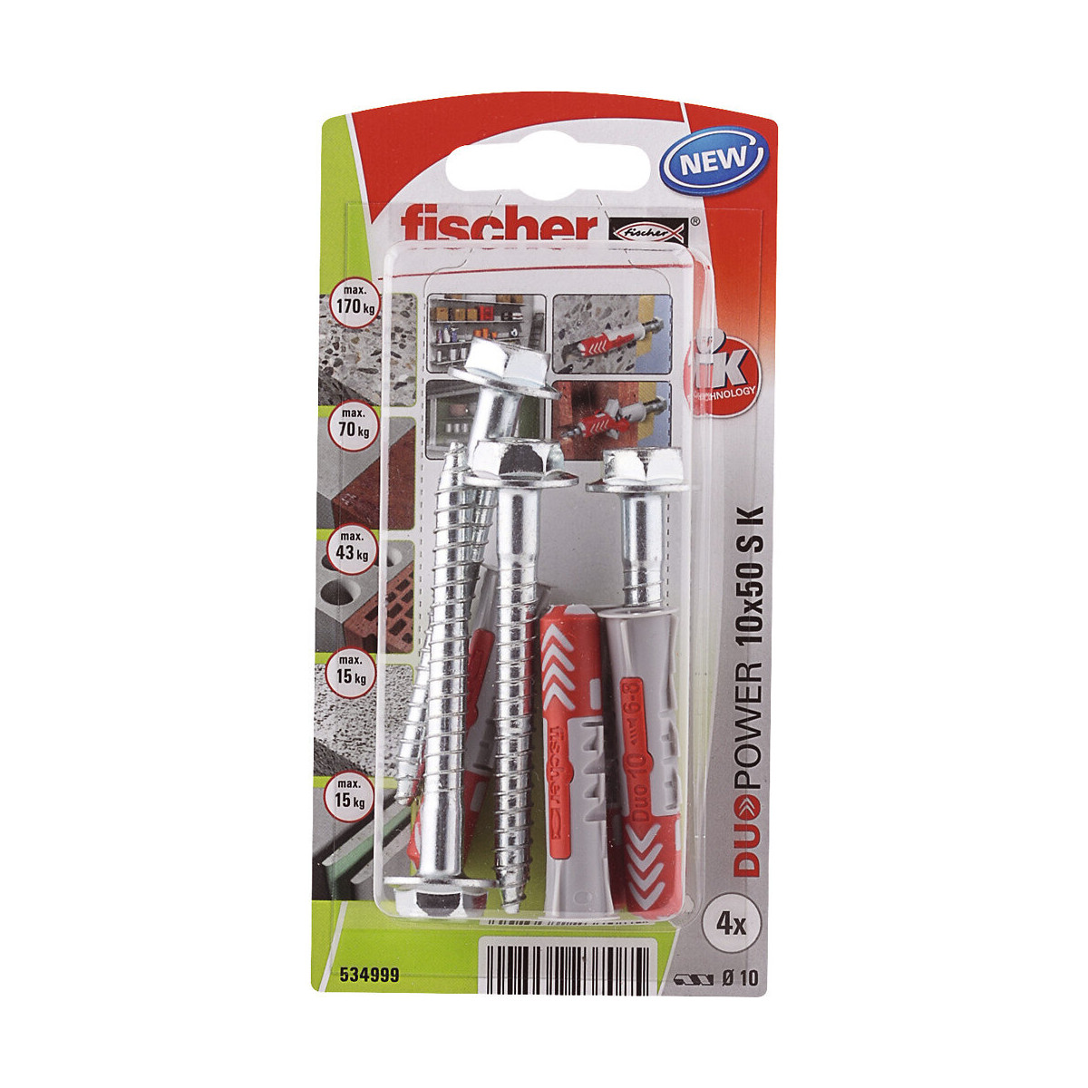 Blister 4 chevilles tous matériaux DUOPOWER 10x50mm +tirefonds