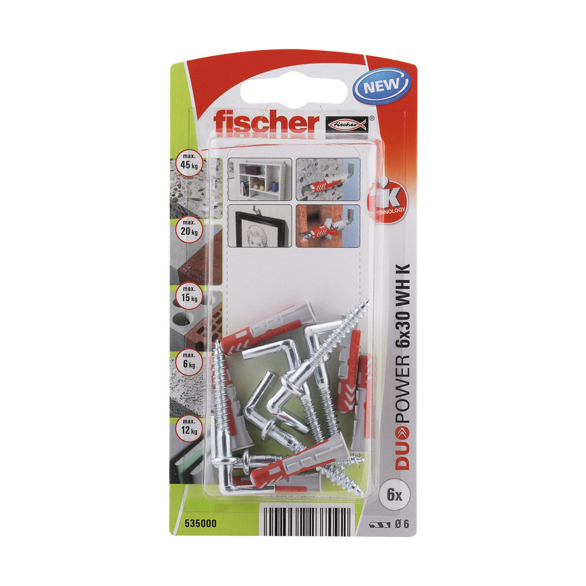 Blister 6 chevilles tous matériaux DUOPOWER 6x30mm + crochets