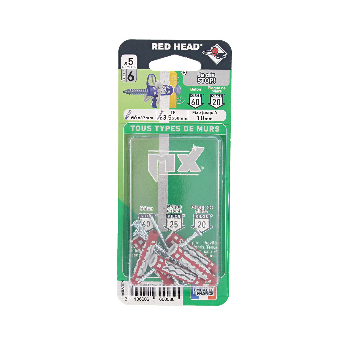 Blister de 5 chevilles Mx 6x37mm + vis TF 3.5x50mm