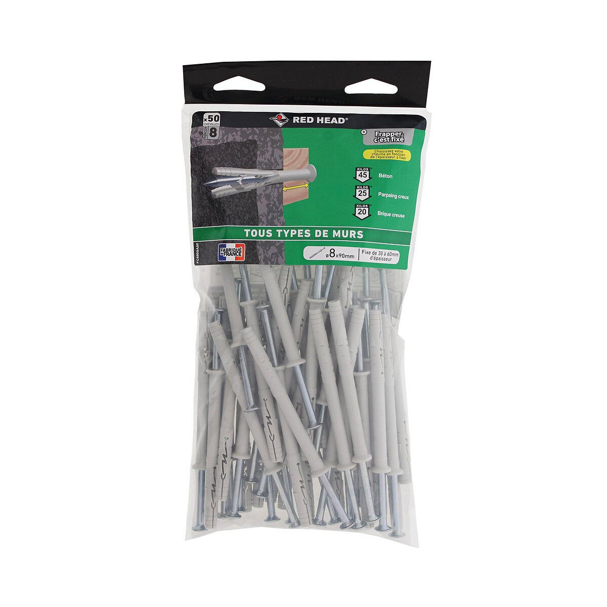 Cheville plastique multi matériaux diamètre 8x90mm. Idéal pour la fixation de tasseaux, lambourdes, plinthes. Elle se choisit en fonction de l'épaisseur à fixer désignée par sa partie lisse sous la collerette. Idéale pour les travaux répétitifs. Il suffit de la frapper au marteau pour déclencher l'expansion.Spécifications techniques