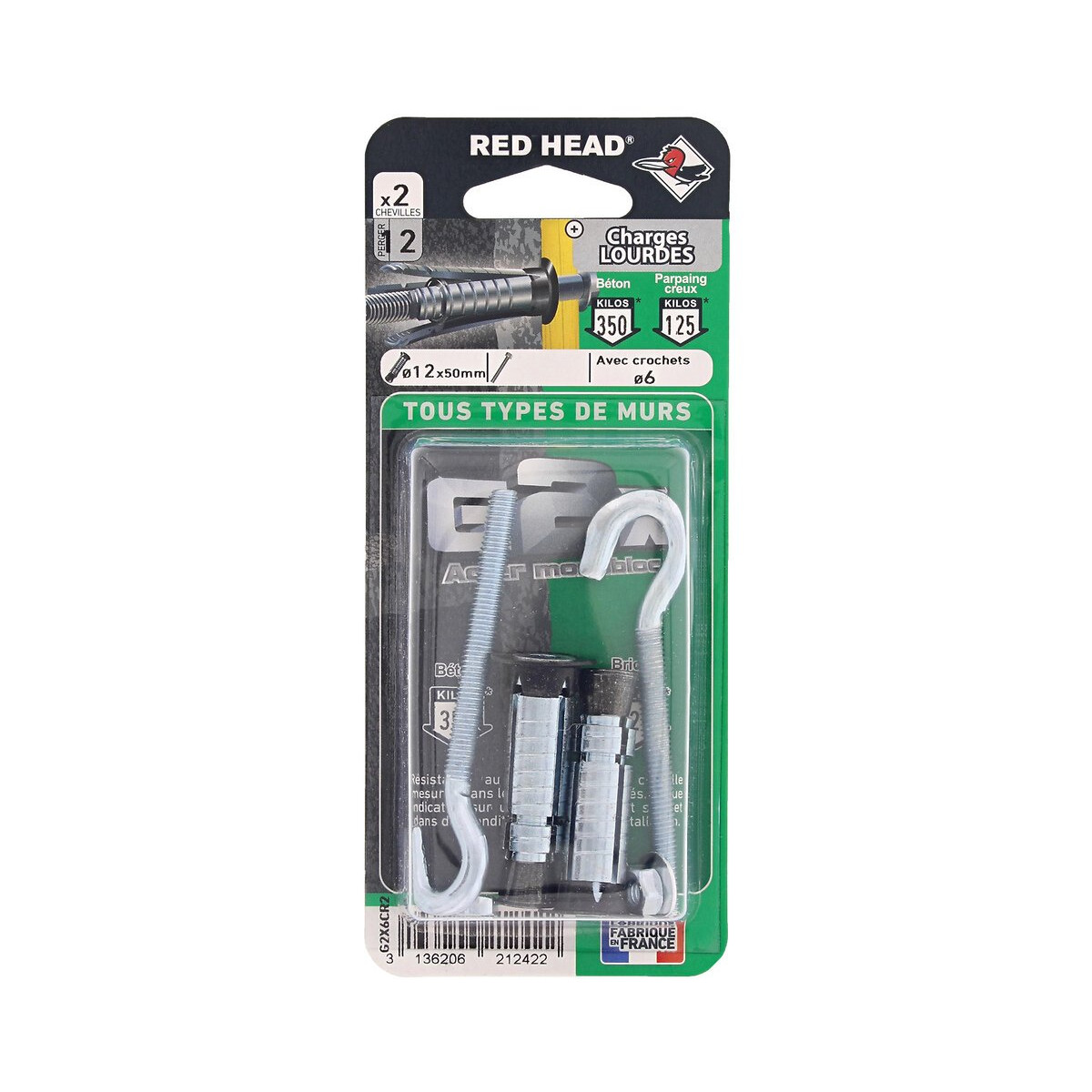 Blister de 2 chevilles G2X 12x50mm + crochets 6