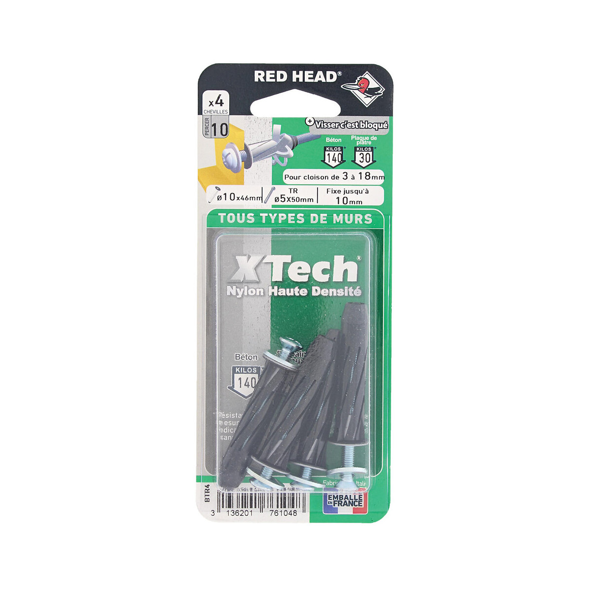Blister de 4 chevilles Xtech 10x46mm + vis TR 5x50mm