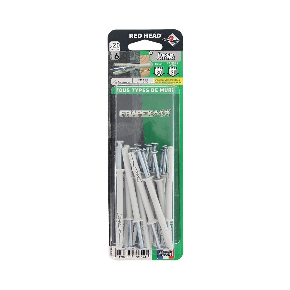 Chevilles nylon à frapper Multi matériaux (idéal pour les travaux répétitifs). Elle se choisit en fonction de l'épaisseur à fixer désignée par sa partie lisse sous la collerette. Idéale pour les travaux répétitifs. Il suffit de la frapper au marteau pour déclencher l'expansion.Spécifications techniques