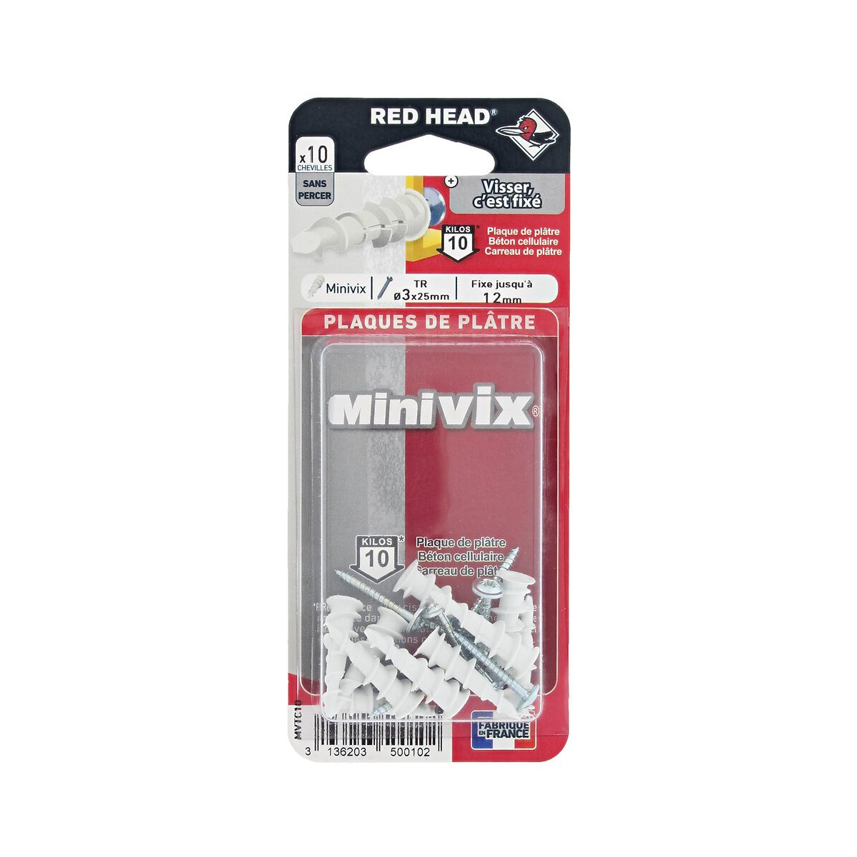 Blister de 10 chevilles Minivix + vis TR 3x25mm