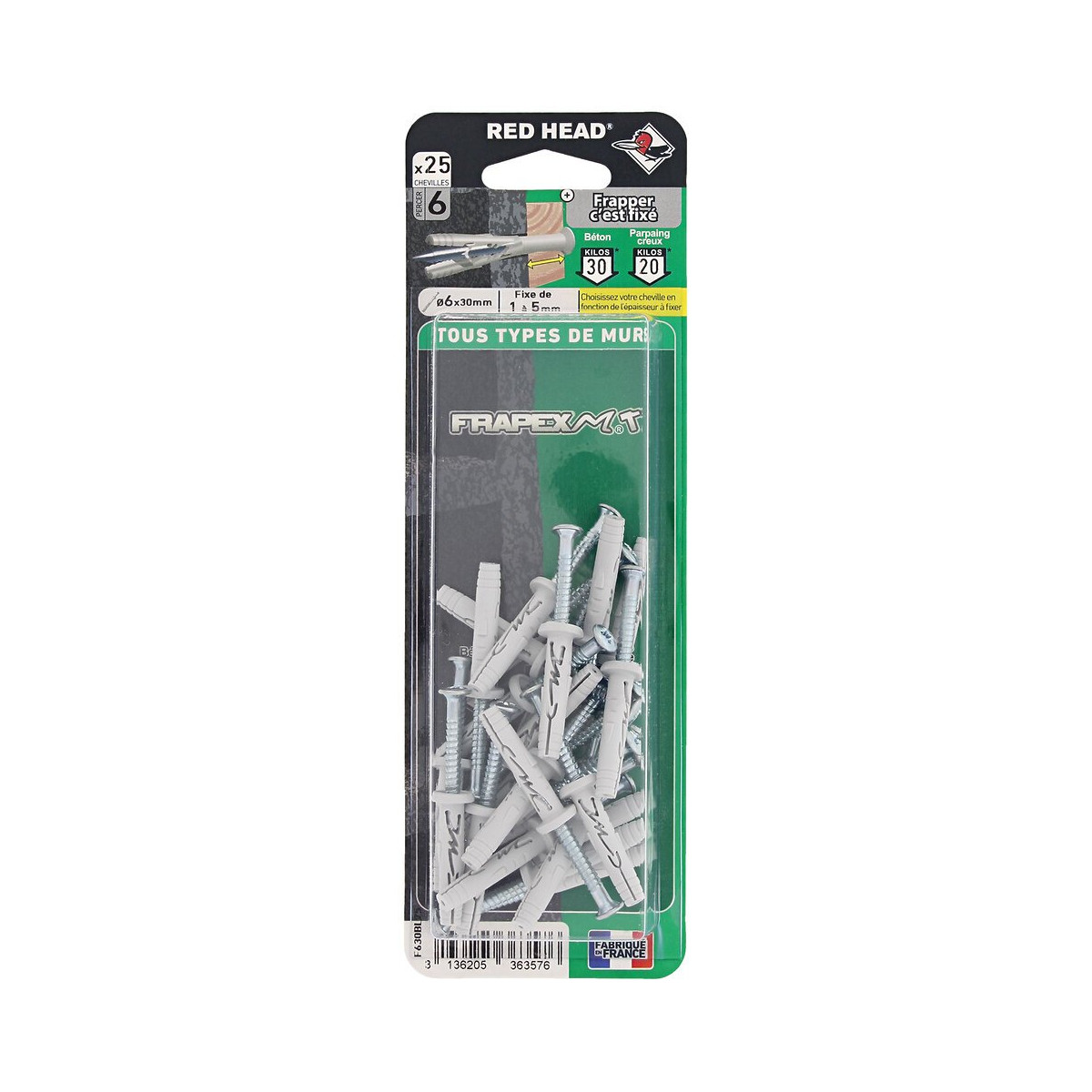 Chevilles nylon à frapper Multi matériaux (idéal pour les travaux répétitifs) Elle se choisit en fonction de l'épaisseur à fixer désignée par sa partie lisse sous la collerette. Idéale pour les travaux répétitifs. Il suffit de la frapper au marteau pour déclencher l'expansion.Spécifications techniques