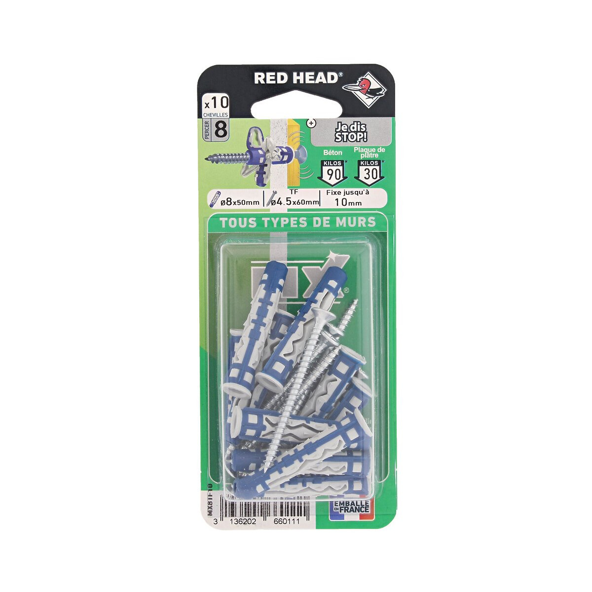 10 chevilles 8x50 mm + vis tête fraisée. La cheville Mx est un concentré de technologie aux performances inégalées dans sa catégorie.Spécifications techniques