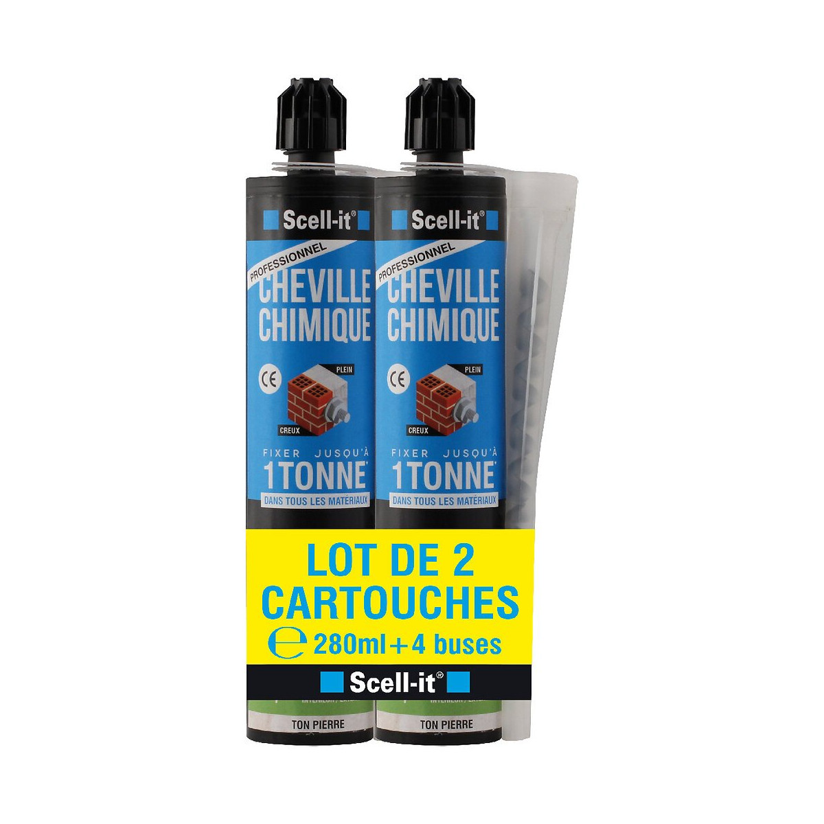 Lot de 2 cartouches polyester sans styrène système peelpack 280 ml chimique filmé + 4 buses. Pour la fixation de charge lourdes dans tous les matériaux, jusqu'à 1 tonne par point de fixation.Spécifications techniques