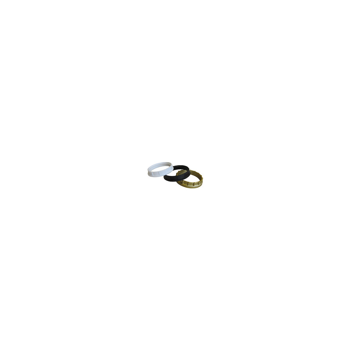 Lot de 3 bagues de fixation pour douille filetée E27. Diamètre 48mm. S'installe sur une douille E27 pour l'équiper d'un abat-jour ou une verrerie. Coloris assortis : blanc, noir, or.