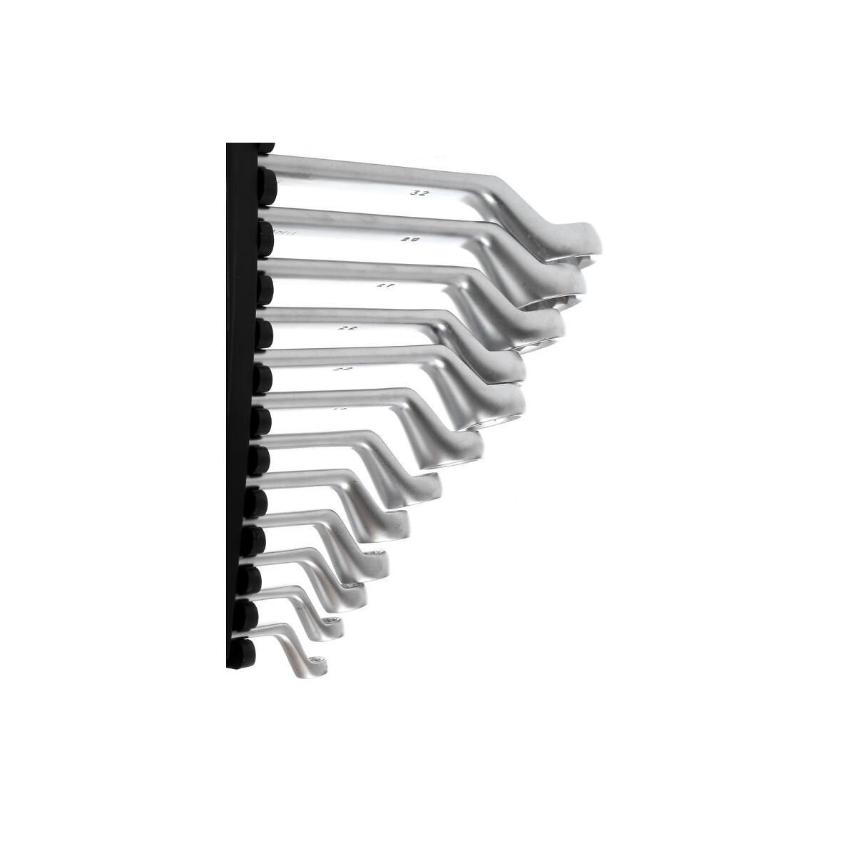 Jeu de clés à œil en acier Cr-V. Il contient 12 clés de dimensions (mm) : 6 x 7, 8 x 9, 10 x 11, 12 x 13, 14 x 15, 16 x 17, 18 x 19, 20 x 22, 21 x 23, 24 x 27, 25 x 28, 30 x 32; CARACTÉRISTIQUES TECHNIQUES: Clés à œil; Dimensions (en mm) : 6 x 7, 8 x 9, 10 x 11, 12 x 13, 14 x 15, 16 x 17, 18 x 19, 20 x 22, 21 x 23, 24 x 27, 25 x 28 et 30 x 32; Produites en acier Cr-V.Spécifications techniques