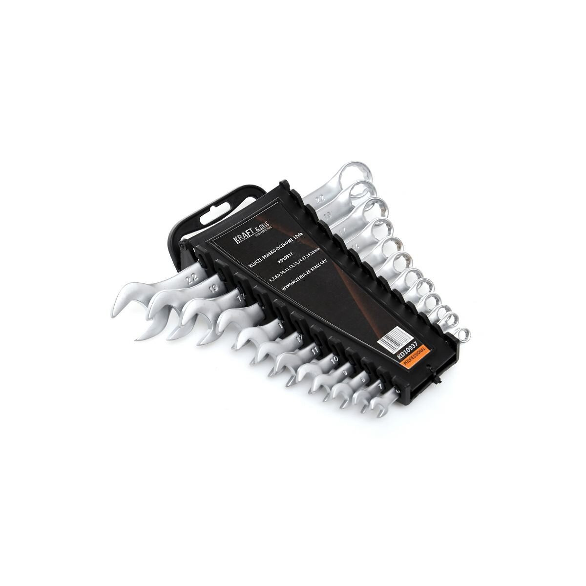 Jeu de clés mixtes en acier Cr-V. Il contient 12 clés de dimensions (mm) : 6 - 14, 17, 19 et 22; CARACTÉRISTIQUES TECHNIQUES: Clés mixtes; Dimensions : 6-14 mm, 17 mm, 19 mm et 22 mm; Produites en acier Cr-V.