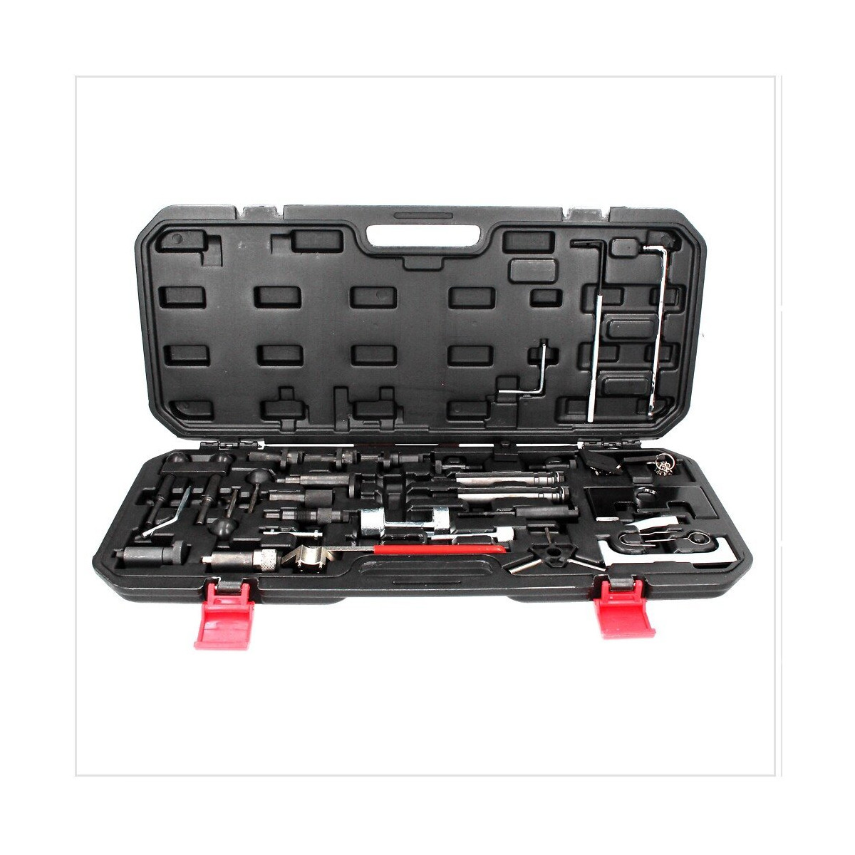 Contenu de la livraison: - 1x BGS technic Jeu d'outils de réglage moteur - 35 pièces (8140) pour VAG Audi / Seat / Skoda / Volkswagen Description du produit: L'ensemble d'outils de réglage moteur de 35 pièces de BGS technic propose une large gamme d'outils de réglage pour divers moteurs du groupe VAG (Audi / Seat / Skoda / Volkswagen). Qu'il s'agisse d'un arbre à cames, d'un vilebrequin, d'une pompe à injection ou de buses d'injection : avec cet ensemble, vous pouvez régler le calage du moteur pour un changement de courroie de distribution / chaîne de distribution. L'ensemble d'outils convient aux moteurs suivants du groupe VAG : pompe / buse 1.9 / 2.0 TDI ; 1.9 TDI (diesel conventionnel); 2.5 V6 TDI (pas essence); 3.3 V8 TDI (pas essence); Moteur 1.2 3 cylindres et 1.4 / 1.6L essence. BGS technic est l'un des principaux fabricants d'outils à main et d'outils spéciaux pour l'automobile.L'entreprise se caractérise par une qualité de traitement élevée et une longue tradition. Spécifications techniques: Fabricant : BGS technique Désignation du fabricant : jeu d'outils de calage du moteur | pour VAG Numéro du fabricant : 8140 Convient aux moteurs VAG suivants : - Pompe / buse 1.9 / 2.0 TDI - 1.9 TDI (diesel conventionnel) - 2.5 V6 TDI (pas essence) - 3.3 V8 TDI (pas essence) - Moteurs 1.2 3 cylindres et 1.4 / 1.6L essence A utiliser comme OEM 2064/3242/3359/3366/3369/3418/3458 / 2065A / T10008 / T10016 / T10020 / T10050 / T10060A / T10098 / T10100 / T10120 / T10121 / T10123 / T10264 / T10265 / T40011