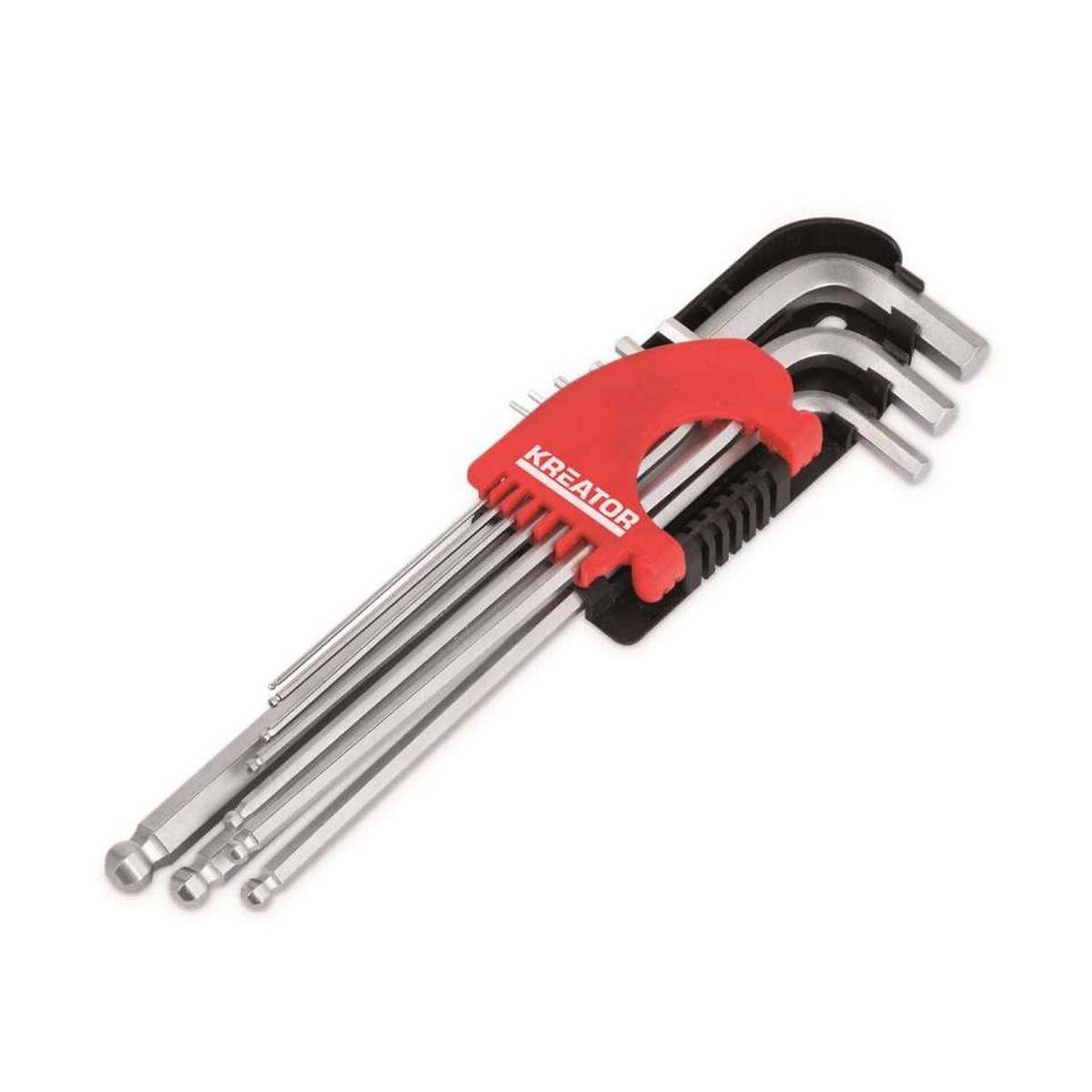 Informations produit: Clés Allen longues 6 pans Contenu: 9 pièces Diamètre de la clé: 1.5 / 2 / 2.5 / 3 / 4 / 5 / 6 / 8 / 10 mm Type de clés et douilles: 6 pans ou Allen Type de clé: Longue Marque: Kreator