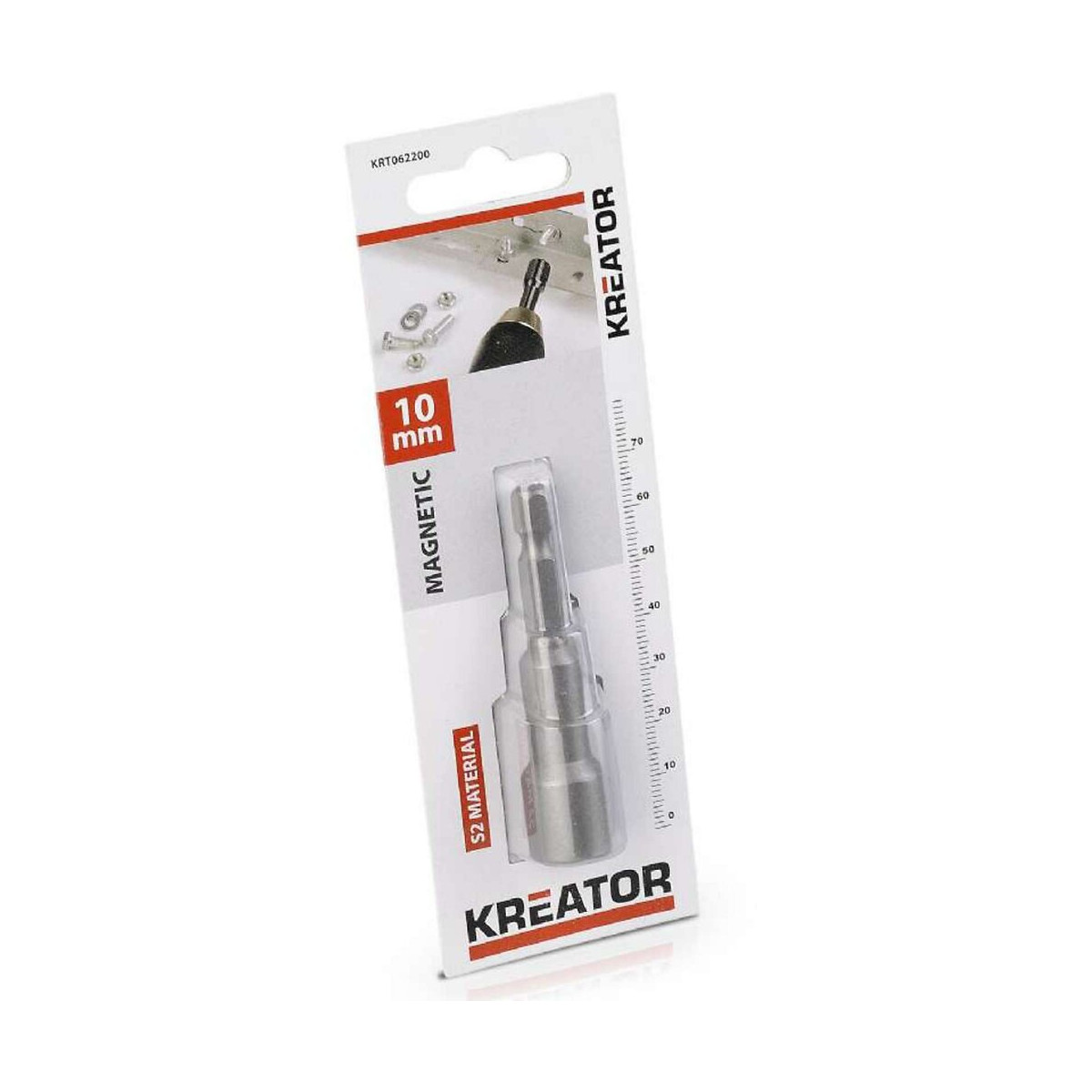 Description détaillée du produit: - produit: tête douille de vissage - marque: Kreator - univers: outillage manuel - utilisation: bricolage - matière: acier chrome vanadium - taille embout: 10 mm - dimensions axe 6 pans 1/4: 6,35 mm - caractéristique: embout magnétique - caractéristique: embout universel