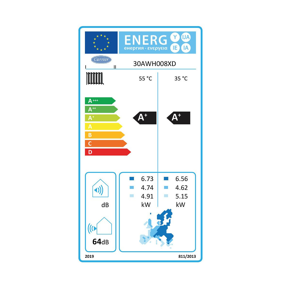 Inverter Type 30 AWH, la pompe à chaleur monobloc pour chauffage seul Ils offrent d'excellentes valeurs d'efficacité énergétique, un fonctionnement exceptionnellement silencieux et une précision dans la gestion des différentes températures qu'elles peuvent gérer.Gestion électronique du système : plusieurs capteurs placés dans des positions clés dans le circuit de réfrigérant détectent l'état de fonctionnement du système La technologie avancée utilisée donne aux utilisateurs des niveaux de confort optimisés, en ce qui concerne la régulation de la température de l'eau et le faible niveau sonore Fonctionnement possible à de faibles températures ambiantes en mode refroidissement (de 0 °C à 46 °C de température extérieure)Logiciel Positive Defrost. Cette logique de régulation avancée permet l'extraction d'énergie de l'air extérieur afin de faire fondre le givre sur la batterie à l'aide de ventilateurs lorsque le compresseur est à l'arrêt Réfrigérant R-410A respectueux de la couche d'ozone, très dense, quantité nécessaire réduite par rapport aux autres réfrigérants Très efficace, il permet d'obtenir un rapport d'efficacité énergétique (EER) élevé Habillage résistant à la corrosion Vendu avec Kit Hydraulique.Pour faire fonctionner votre AquaSnap 30 AWH, le Thermostat programmable 33AW-CS1 Carrier est obligatoire. Classe énergétique A++ COP 2,81 Puissance calorifique nominale -7/35°C 8 kW Plage de fonctionnement chauffage - Air -20 / +35 °C Puissance acoustique à l'extérieur 64 dB(A) Tension d'alimentation 230V Monophasé Intensité maximale 14,5 A Charge en fluide Frigorigène R 410 A 1,81 kg Poids à vide module extérieur 66 kg Dimensions module extérieur (HxLxP) 821 x 908 x 350 mm Pour la Garantie 2 ans Fabricant n'oubliez pas: La mise en service doit être effectuée par une station technique agrée par la marque