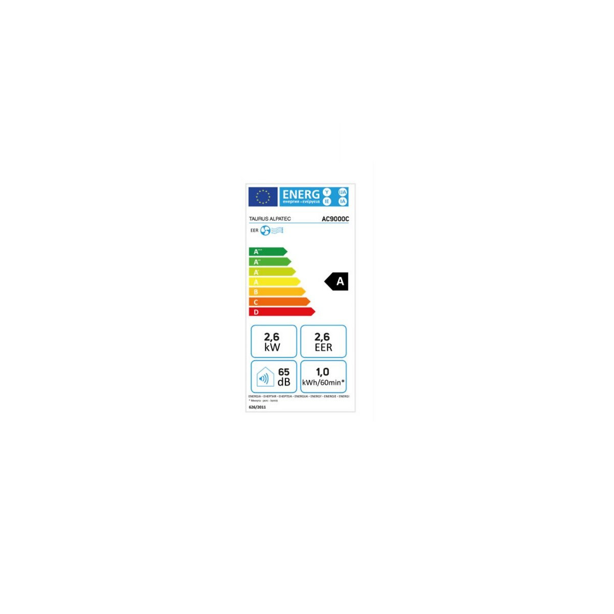956322000 - Climatiseur mobile AC 9000 C Taurus Alpatec 956322000 avec kit fenêtre. - Type de produit : Climatiseur mobile. Puissance frigorifique : 9 000 Btu/h - 2 600 W - 2 250 Frigories. Consommation mode froid : 1 023 W. Utilisation possible pour une pièce jusqu'à 25 m². Débit d'air max : 350 m3/h. Puissance sonore max : 65 dB(A). Humidité supprimée (mode deshu) : 24 L/24 h. 3 fonctions : froid / déshumidification / ventilation. Mode Nuit. 2 vitesses de ventilation. Filtre anti-poussières. Gaz réfrigérant : R 290. Affichage numérique, panneau de commandes tactile. Minuteur : 24 H. Kit fenêtre inclus. Oscillation des ailettes. Télécommande. Roues et poignée. Inclus : kit sortie d'air pour les fenêtre coulissantes et guillotines & manchon diam. 15 cm / Longueur 1,5 m. Coloris : Blanc. Dimensions produit (LxHxP) : 36,5 x 71,3 x 35,5 cm. Poids net : 20 Kg.