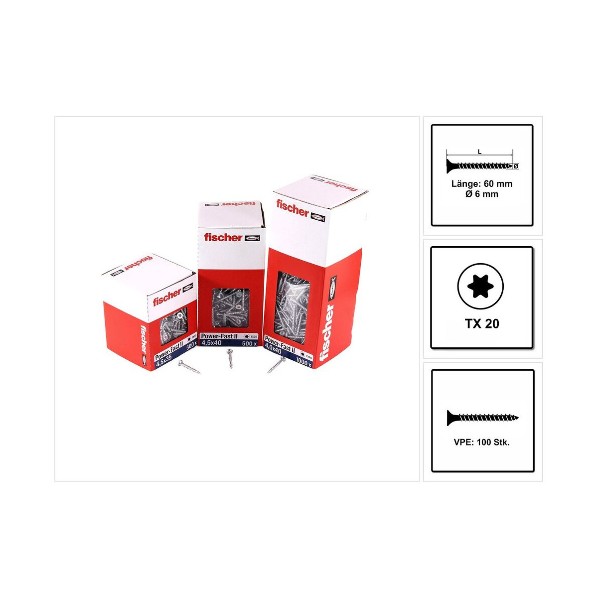 Contenu de la livraison: - 100x Fischer Vis pour panneaux de particules Power-Fast II FPF II 6.0x60 mm Description du produit: Les vis pour panneaux de particules conviennent pour une utilisation dans des structures porteuses en bois, pour assembler des pièces en bois massif, en bois lamellé-collé, des panneaux à base de bois, etc., ainsi que pour relier des pièces métalliques au bois. Les vis assurent des connexions puissantes dans tous les types de bois, mais aussi pour une fixation sans dommage des pièces métalliques au bois. La vis pour panneaux de particules Power-Fast II est une vis avec des charges testées dans la cheville fischer (par exemple DUOPOWER et UX). Il offre une application flexible dans les goujons avec des capacités de charge élevées. Avec ces vis, Fischer a réussi à créer la solution idéale pour une finition de surface propre avec moins de dommages sur le métal. La pointe de la vis avec les trois nervures garantit un comportement de morsure rapide et un pré-fraisage. Pour une fixation rapide et un comportement de fendage réduit. La géométrie sous la tête avec un double cône optimisé et des poches fraisées garantit moins de surfaces en bois déchirées et moins de dommages aux composants métalliques. Pour une meilleure apparence et sensation des surfaces. L'augmentation du pas de filetage réduit considérablement le temps de vissage et permet un assemblage rapide. Les nervures de la fraise en bout, associées à la géométrie de la fraise, réduisent sensiblement la résistance au vissage. Cela signifie que plus de vis peuvent être vissées avec une durée de vie de la batterie plus longue et moins d'effort. La nouvelle géométrie de la fraise permet un broyage précis et un travail optimal de la farine de bois. Cela signifie que de petites distances au bord et au centre sont possibles. Le zingage galvanique, passivé bleu, ne contient aucun composant de chrome VI et est donc très écologique. Le nouveau Power-Fast II avec sa géométrie de vis unique combine le plus haut savoir-faire technique avec une excellente conception. Power Fast II est la vis pour aggloméré pour un traitement rapide et flexible. Spécifications techniques: Numéro du fabricant: 670455 Diamètre: 6,0 mm Longueur: 60 mm Longueur du filetage: 53 mm Matériel: acier Revêtement: Galvanisé, passivé bleu Entraînement: étoile intérieure TX20 Type de filetage: filetage complet Forme de la tête: tête fraisée
