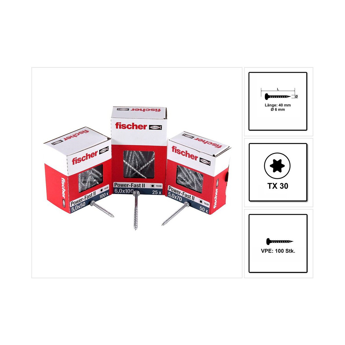 Contenu du paquet: - 100x Fischer Power-Fast II FPF II Vis à bois aggloméré 6,0x40 mm ( 670530 ) Description du produit: Les vis à bois aggloméré Power-Fast II de la maison Fischer sont parfaitement adaptées aux constructions porteuses en bois, à l'assemblage de pièces en bois massif, en bois lamellé-collé, en panneaux à base de bois, etc., ainsi qu'à l'assemblage de pièces métalliques au bois. Elles assurent de puissantes liaisons dans tous types de bois, ainsi q'une fixation sans dommage des pièces métalliques sur le bois. Leurs charges ont été testées dans les chevilles fischer (par exemple DUOPOWER et UX). Par ailleurs, elles offrent une application flexible dans l'ancrage avec des capacités de charge élevées. Elles sont la solution idéale pour une finition de surface propre avec moins de dommages au métal. Les pointes des vis avec leurs trois nervures assure une morsure et un pré-fraisage rapide pour une mise en place rapide et un comportement de fissuration réduit. La géométrie inférieure de leurs tête avec double cône optimisé, ainsi que les poches de fraisage assurent moins de surfaces de bois arrachées et moins de dommages aux composants métalliques, pour un meilleur aspect et un meilleur toucher des surfaces. Par ailleurs, L'augmentation du pas de vis réduit considérablement le temps de vissage et permet un assemblage rapide. De plus, Les nervures de fraisage de leurs tiges, associées à la géométrie de la fraise à noyau, réduisent sensiblement la résistance au vissage. Ce qui permet de visser un plus grand nombre de vis avec une plus grande autonomie et moins d'efforts. La nouvelle géométrie de la fraise à noyau permet un fraisage précis et un usinage optimal de la farine de bois. Cela signifie que de faibles distances entre le bord et le centre sont possibles. Leurs revêtements de zinc galvanique, passivé en bleu, sont dépourvus de chrome VI et sont donc très respectueux de l'environnement. Le nouveau Power-Fast II, avec sa géométrie de vis unique, allie le plus haut savoir-faire technique à un excellent design pour un traitement rapide et flexible. Spécifications techniques: Numéro de fabricant : 670530 Diamètre : 6 mm Longueur : 40 mm Longueur du fil : 33 mm Forme de la tête : Tête demi-ronde (Pan Head) Type de filetage : Plein fil Empreinte : Étoile intérieure TX30 Matériau : Acier Revêtement : Galvanisé, passivé bleu